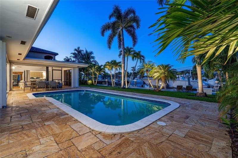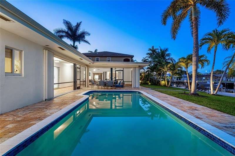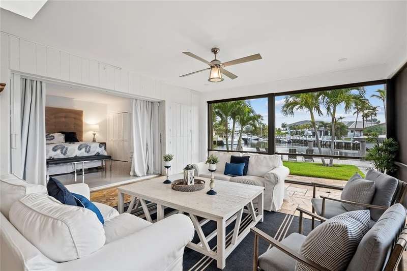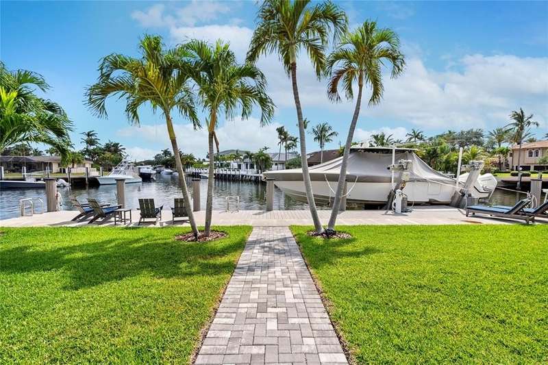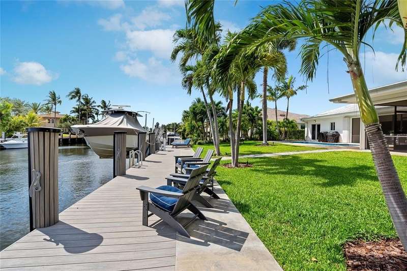 Introducing The Commodore’s Boathouse in the desirable Cove enclave of East Deerfield Beach, sited on 90’ of deepwater frontage with picturesque southern long water views at an intersecting turning basin on the extra wide Kingfisher Waterway. This fully furnished exceptional estate offers 3 bedrooms and 3 full bathrooms with 3,001+/- square feet of total space. Outdoor entertainment is enjoyed under the expansive screened-in porch. Amenities include a resort-style heated & chilled pool, updated interiors, impact windows/doors, and more. Ideal for the avid boater, there is a 70' full-service composite yacht dock with 20,000± lbs boat lift just minutes to both the Boca & Hillsboro Inlets. Conveniently located within a short distance to Deerfield Beach Pier & nearby world-class restaurants.