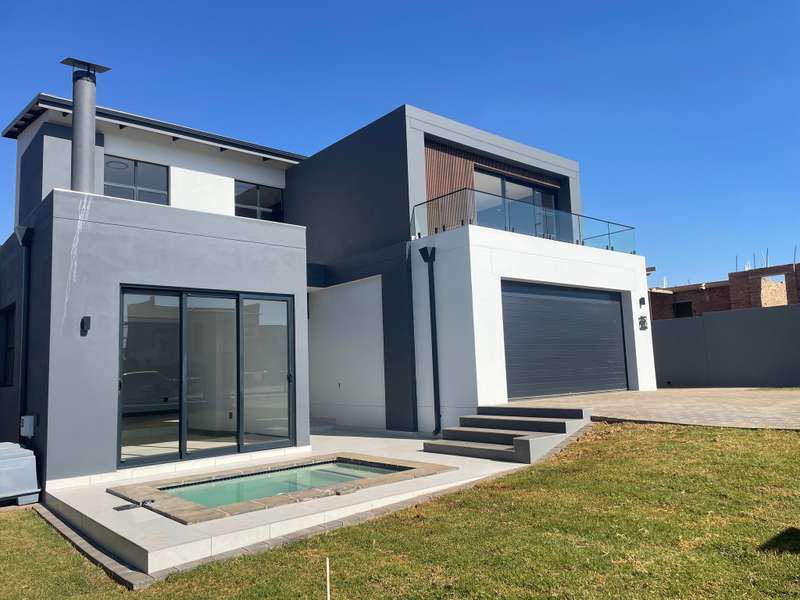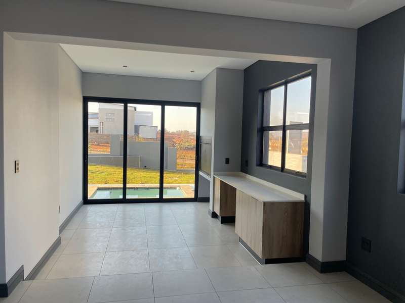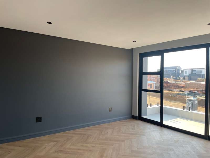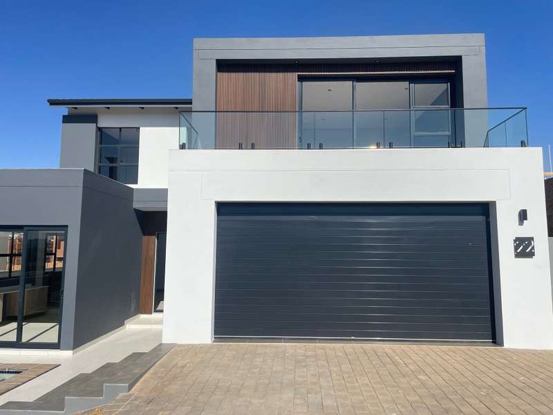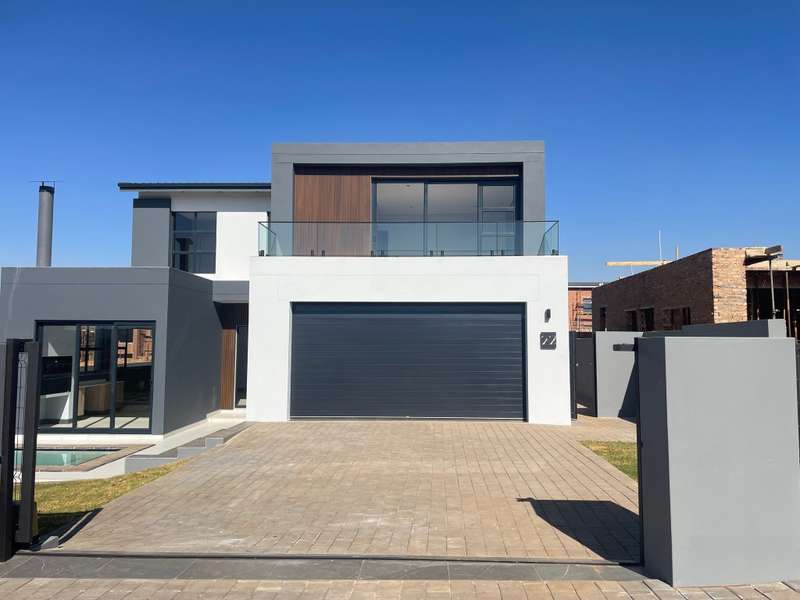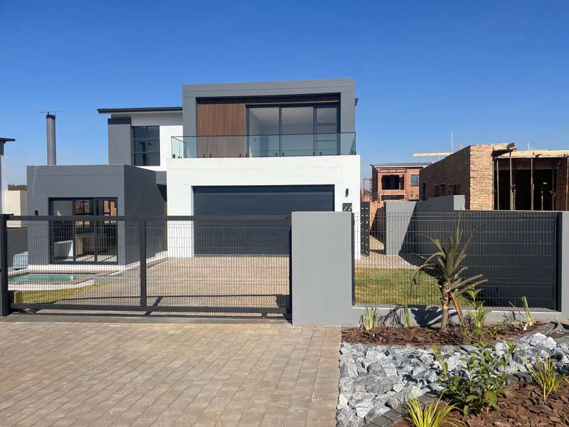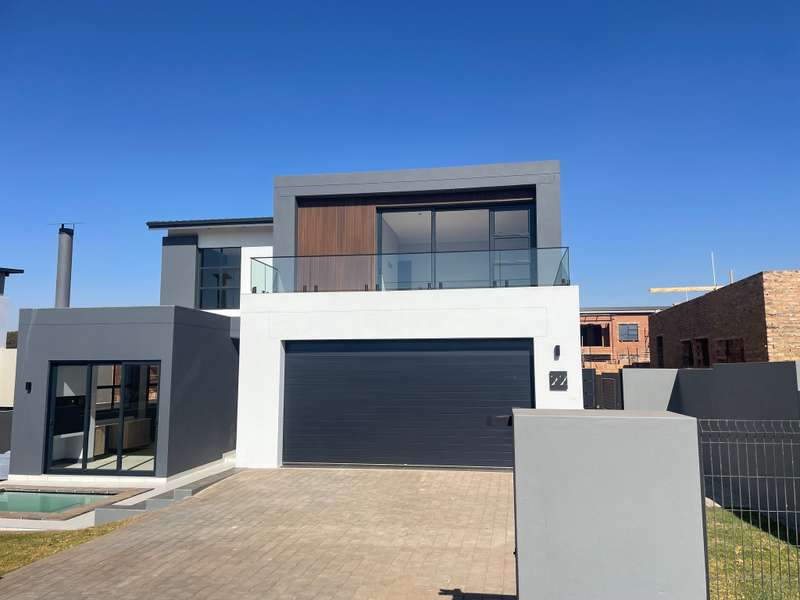 4 BEDs,3 BATH BRAND NEW ELEGANT HOUSE FOR SALE IN FOUNTAINBROOK ESTATE Featuring 4 bedrooms, 3 bathrooms, entertainment room leading to landscaped garden and swimming pool. Open plan kitchen (with scullery), Lounge, Dining Room, double garage and balconies. The main entrance has a covered porch to the front door which opens into the foyer with the staircase. This area leads to the rest of the open plan living areas, The open plan modern kitchen which includes a kitchen island with a prep bowl, a pantry and a separate combination scullery and laundry room that leads to the outdoor dry yard and staff quarters that includes a bathroom. The living and entertainment areas with a lounge, dining room and entertainment room flow seamlessly through sliding doors onto the open patio and landscaped garden with a sparkling pool. A guest bedroom is also situated on the ground floor (can be used as a study) and a separate guest bathroom (shower, vanity and toilet). A linen cupboard in the passage has ample extra shortage space. First floor: On the first floor the main bedroom with its own balcony, walk in closet, main en-suite full bathroom. The other two family members bedrooms share a balcony and share the use of a full bathroom opposite the bedrooms. Please note that the estate allows for only 2 dogs or cats on each property upon written consent of the HOA.