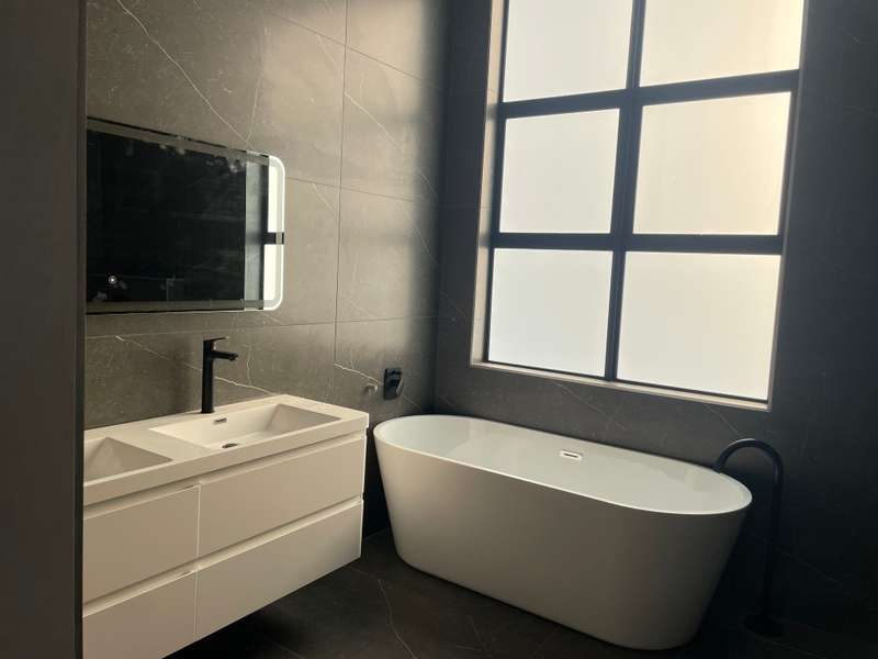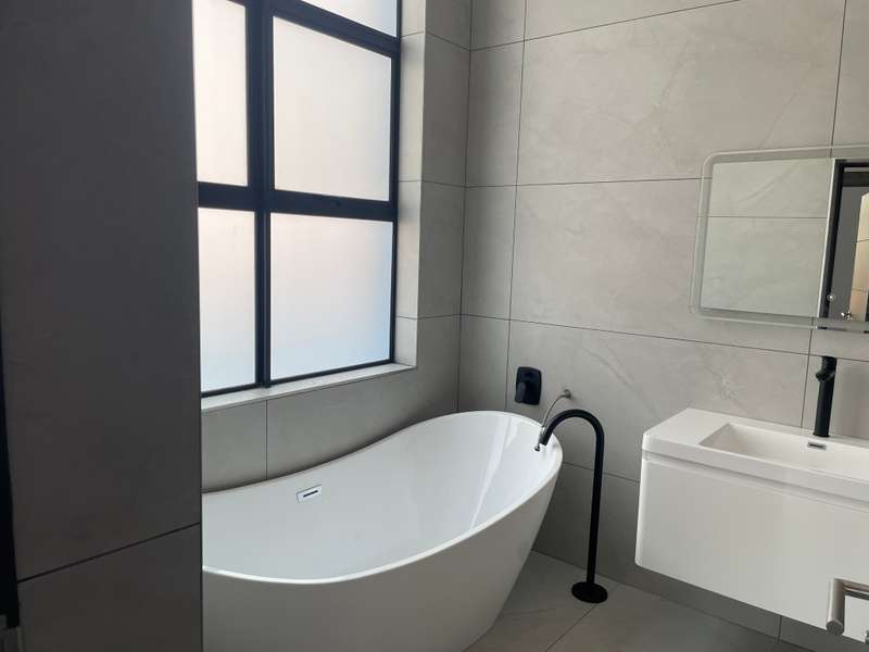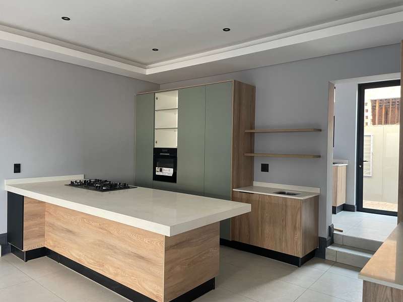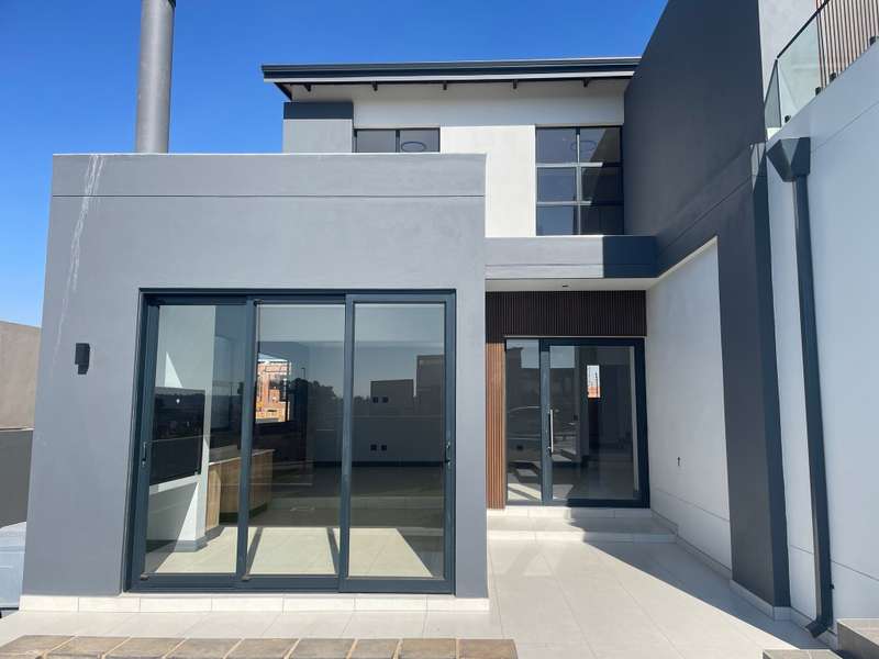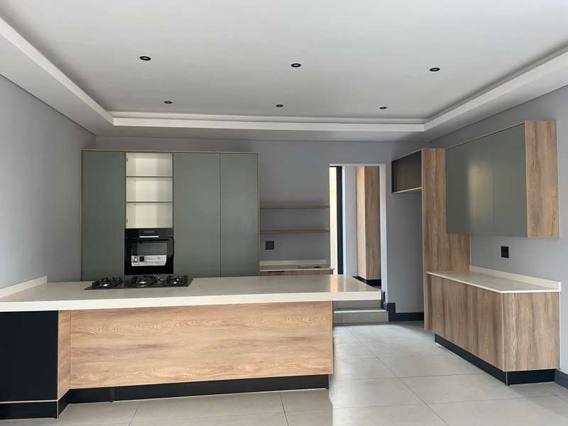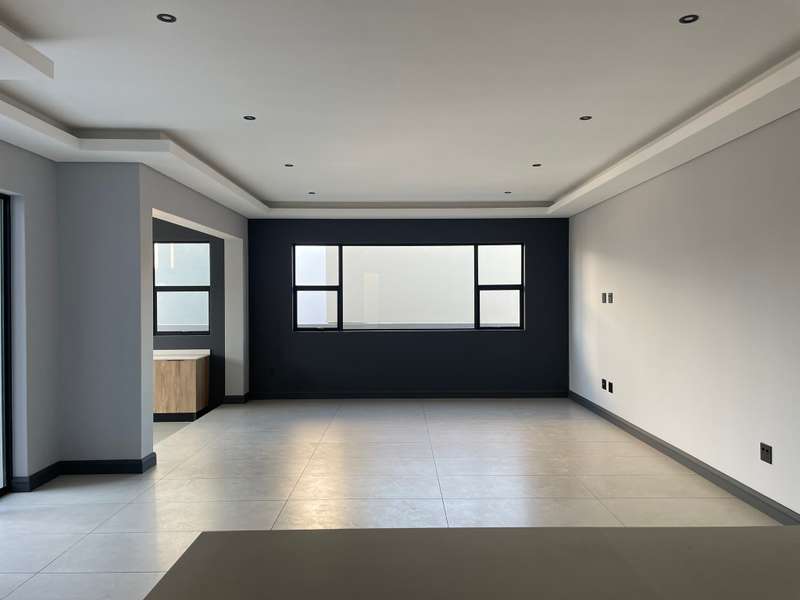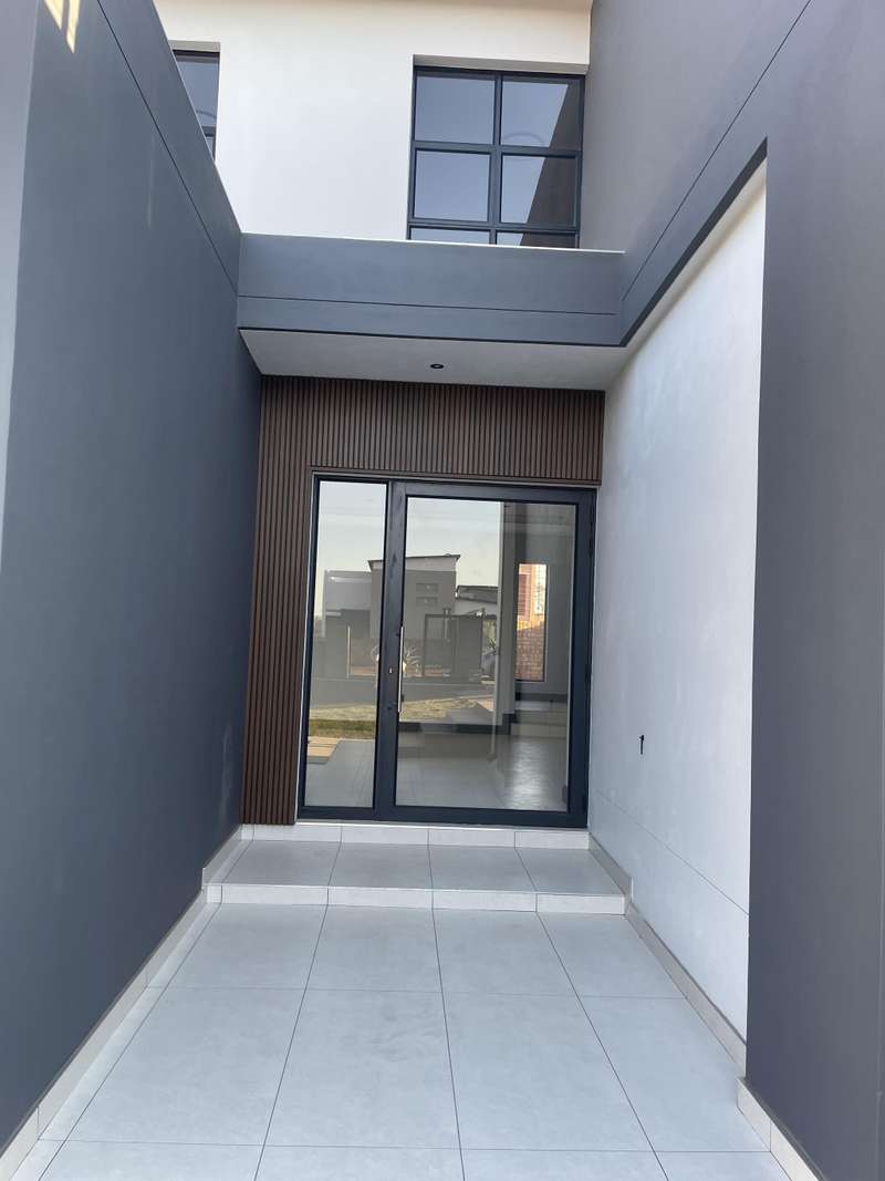 4 BEDs,3 BATH BRAND NEW ELEGANT HOUSE FOR SALE IN FOUNTAINBROOK ESTATE Featuring 4 bedrooms, 3 bathrooms, entertainment room leading to landscaped garden and swimming pool. Open plan kitchen (with scullery), Lounge, Dining Room, double garage and balconies. The main entrance has a covered porch to the front door which opens into the foyer with the staircase. This area leads to the rest of the open plan living areas, The open plan modern kitchen which includes a kitchen island with a prep bowl, a pantry and a separate combination scullery and laundry room that leads to the outdoor dry yard and staff quarters that includes a bathroom. The living and entertainment areas with a lounge, dining room and entertainment room flow seamlessly through sliding doors onto the open patio and landscaped garden with a sparkling pool. A guest bedroom is also situated on the ground floor (can be used as a study) and a separate guest bathroom (shower, vanity and toilet). A linen cupboard in the passage has ample extra shortage space. First floor: On the first floor the main bedroom with its own balcony, walk in closet, main en-suite full bathroom. The other two family members bedrooms share a balcony and share the use of a full bathroom opposite the bedrooms. Please note that the estate allows for only 2 dogs or cats on each property upon written consent of the HOA.