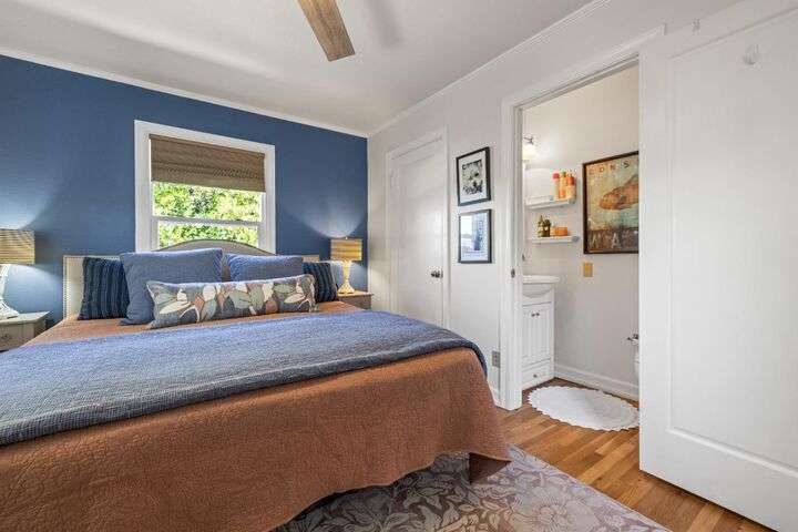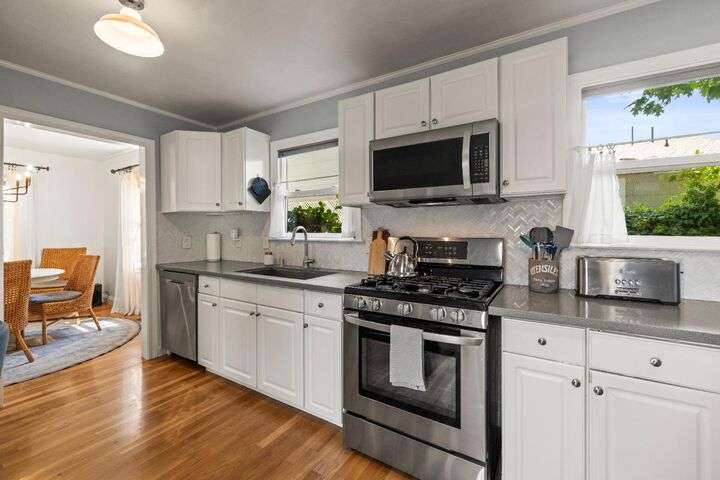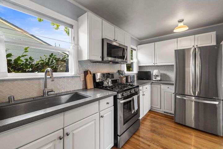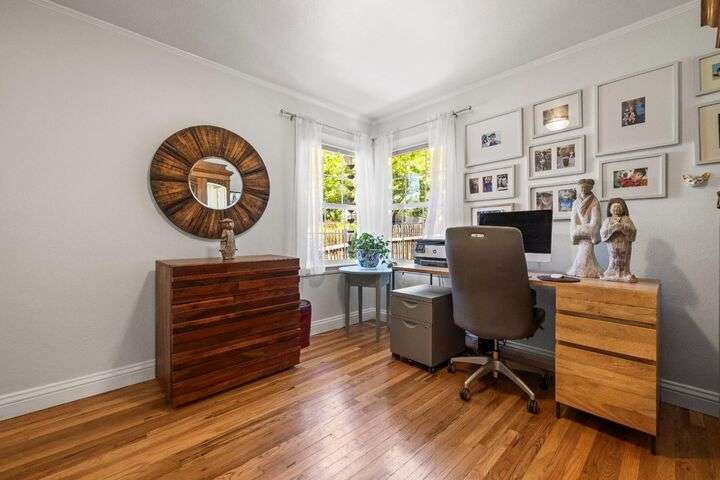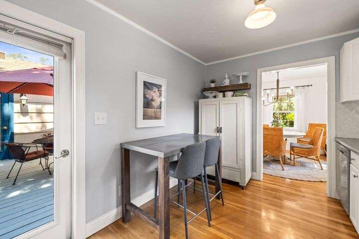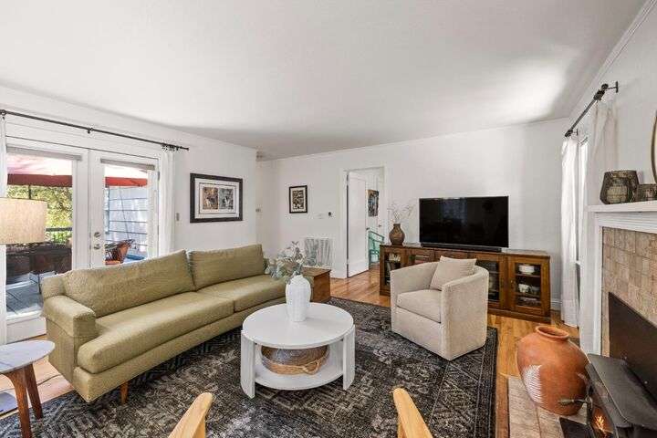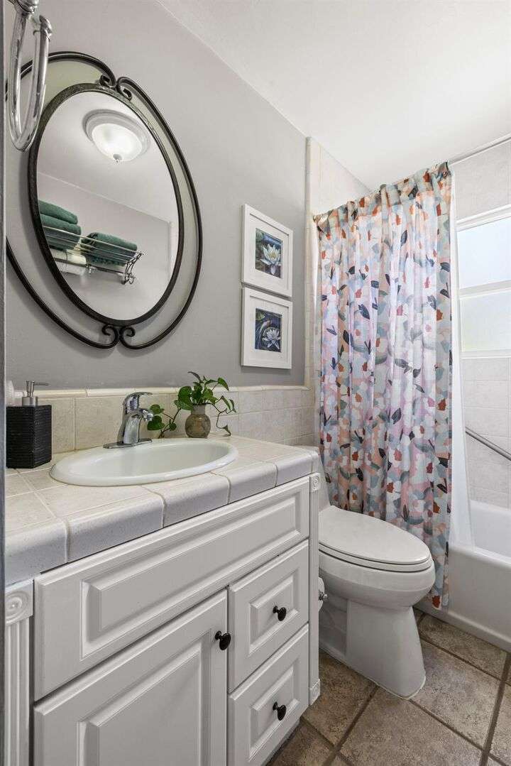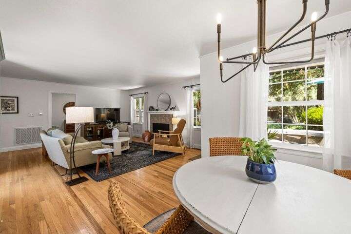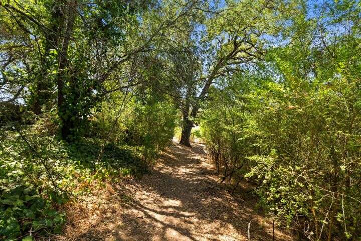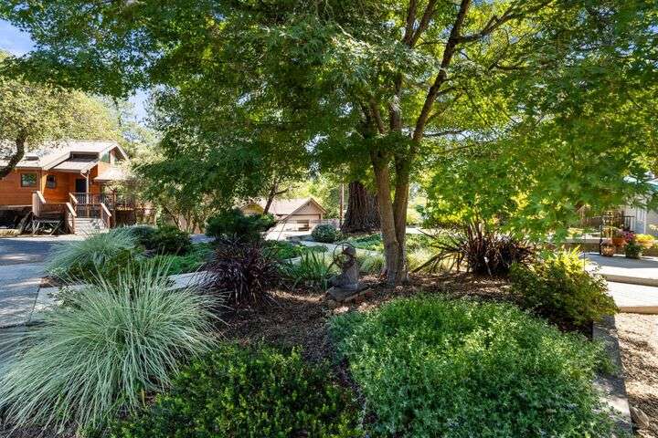 Terrace Street is back on the market! Magic location per the local genre-and you will agree as you approach the tidy front yard and carefully chosen plantings guarded by a towering Redwood tree offering shade and history. Step into this one level home onto genuine wood flooring revealing the spacious living/dining area, adjacent to the kitchen and access through french doors to generously sized deck. It welcomes you to the lower back yard of trees and plantings. The bedroom wing - think U shaped plan - is accessible from the deck also and on the opposite side is the kitchen where you could enjoy breakfast. Upgraded counters & sink are valued additions. The long gated driveway could store an RV, boat or? The garage may have a new life as an ADU? Under house storage a plus. The community pool is a definite asset and just steps away as well is a walking trail. This is a setting that you will want to call home.