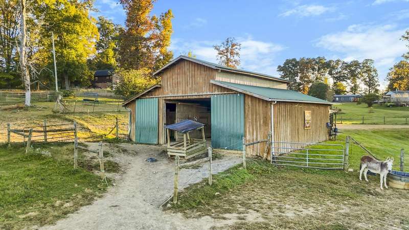 This fully-equipped 5.49 -acre property offers the perfect hobby farm lifestyle for you and your animals. The property features a comfortable 1 bedroom, 2-bathroom and 2 additional rooms with closets~ home secured within a gated and completely fenced perimeter.Property features:Fenced pastures: The land is cross-fenced into three separate pasture fields, allowing for rotational grazing to maintain healthy grasslands for your horses, chickens, pigs, and goats.Pond: A pond is located on the property, providing a natural water source and a scenic feature.Large barn: The spacious barn includes:Five horse stalls and a dedicated feed room and a tack room and additional are for storage. Barn has electric & water Turnouts: A run-out area extends from the barn to a separate fenced section, giving your horses easy access to exercise and fresh air.Secure fencing: The entire property is enclosed with complete, crossed, and gated fencing for maximum safety and security for all animals.Pet-friendly yard: A fenced-in backyard provides a safe and contained space for smaller animals and pets to roam freely.This property is a unique opportunity to live the farm life you've always envisioned, providing an environment for both you and your livestock. Get ready to call this place home! Call for viewing today.