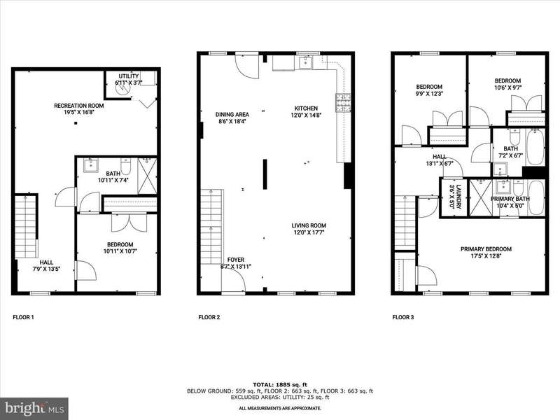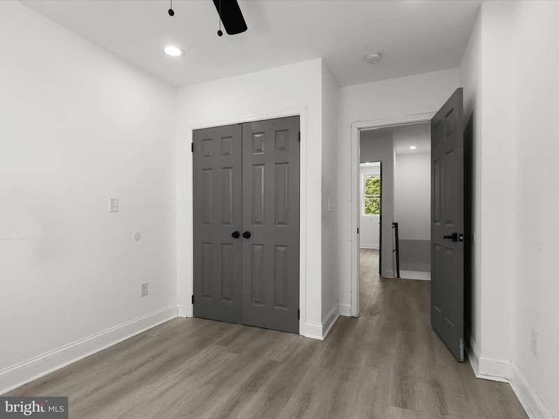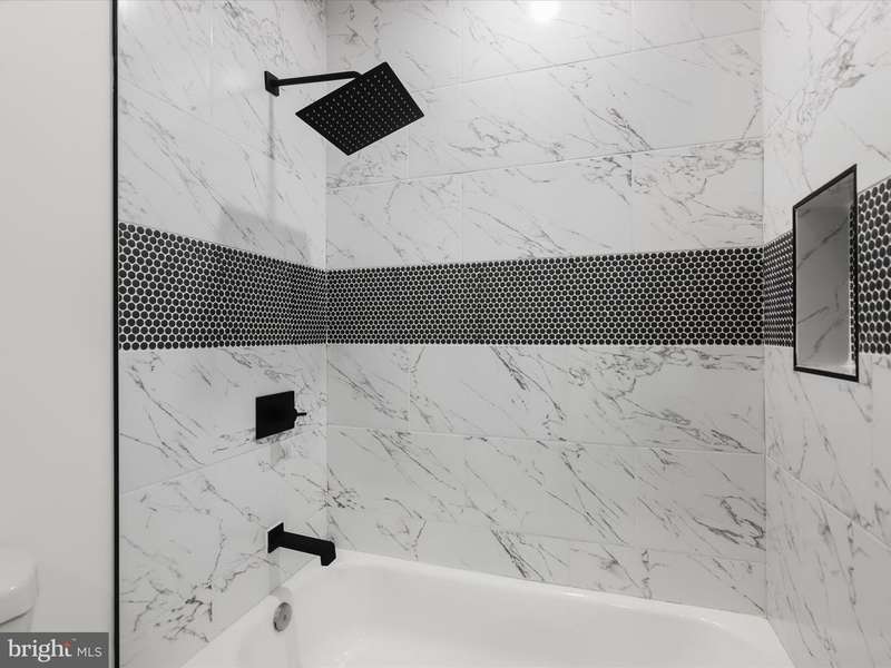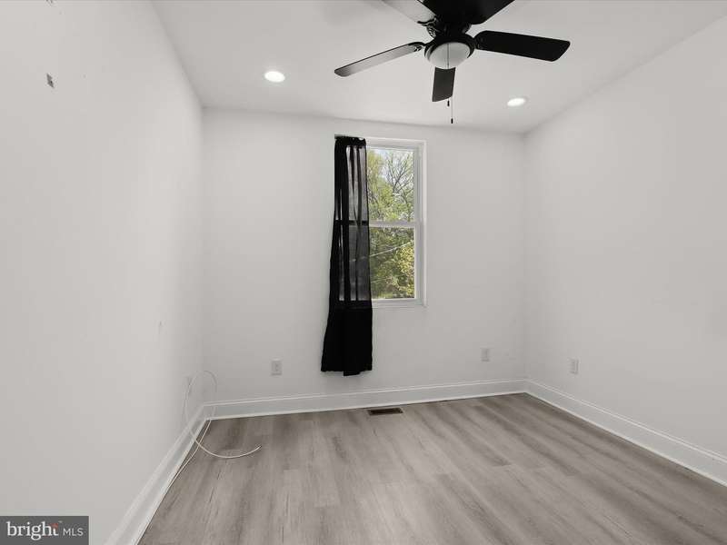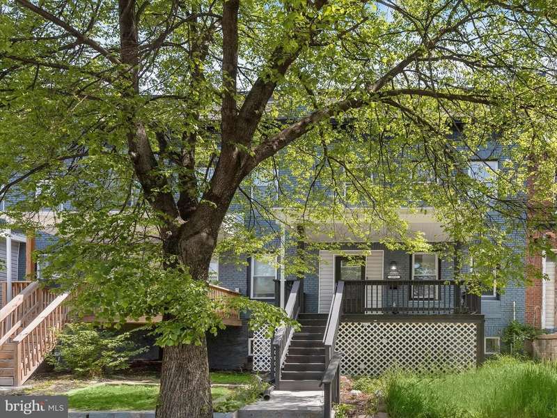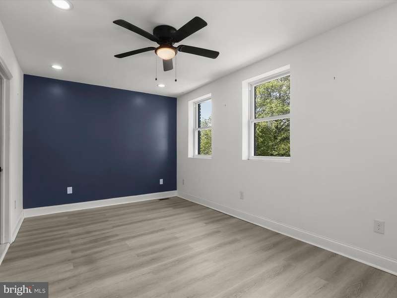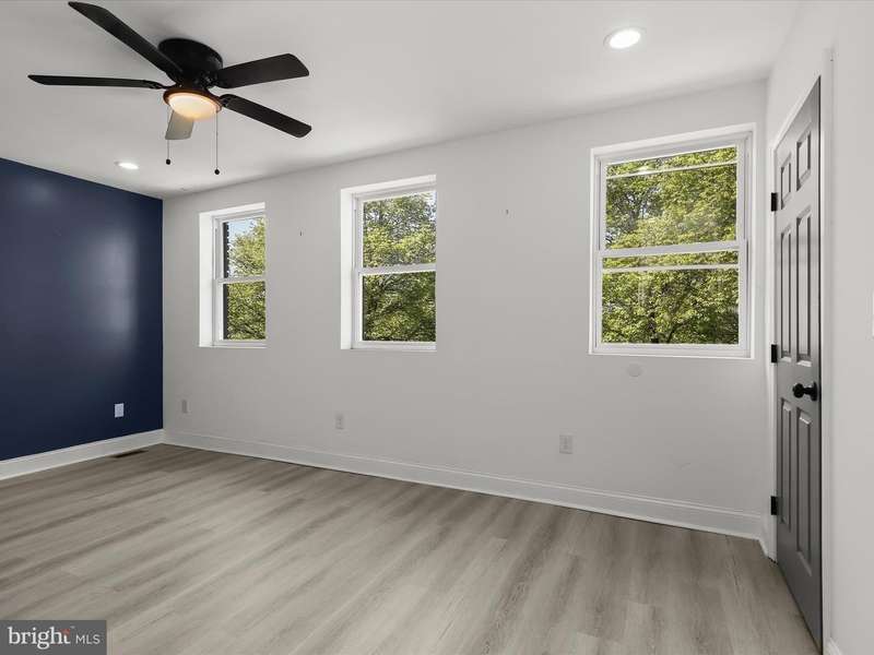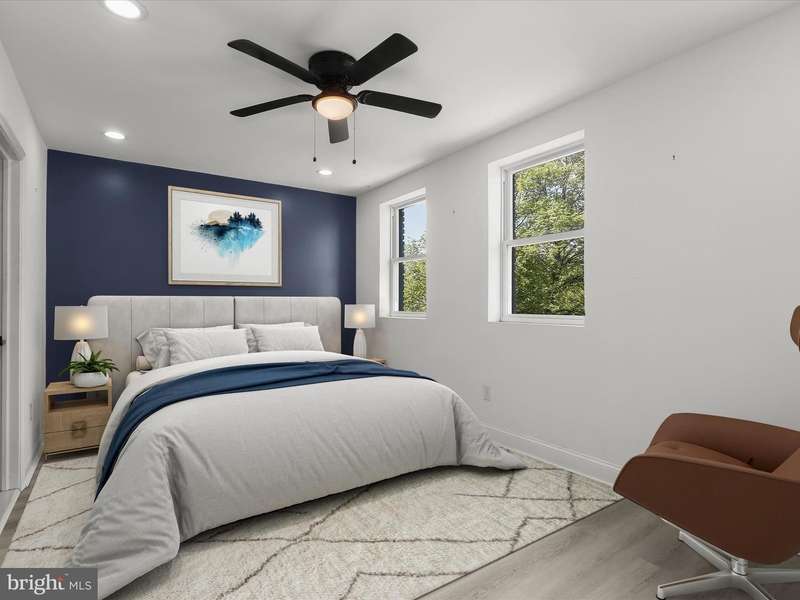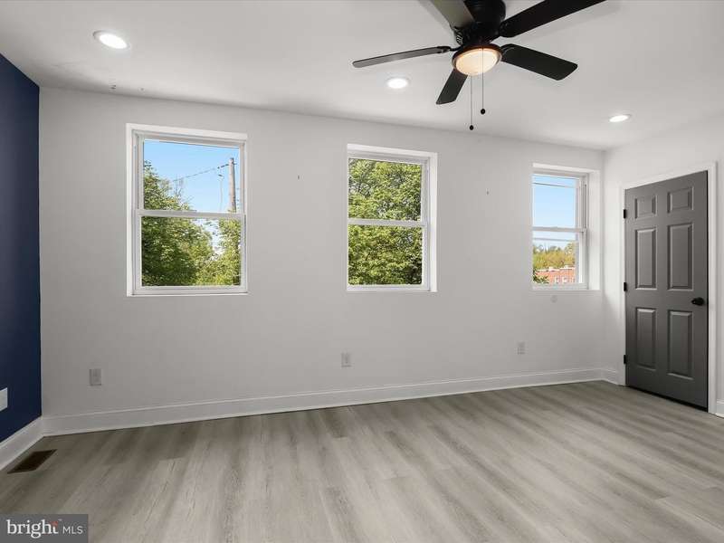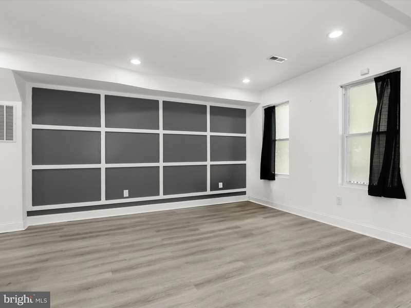 This beautifully renovated 4-bedroom, 3-bath rowhome blends modern style with everyday comfort. A covered front porch welcomes you into a thoughtfully updated interior featuring an open floor plan, luxury vinyl plank flooring, and a fresh neutral color palette. The main level offers a spacious living room with recessed lighting and a decorative grid-panel accent wall, flowing seamlessly into the dining area. From here, step out to a private rear courtyard-ideal for outdoor dining or relaxing in warmer months. The updated eat-in kitchen stands out with white cabinetry, stainless steel appliances, quartz countertops, and a classic subway tile backsplash. A center island with waterfall-edge countertop and seating adds both function and style. Upstairs, the primary suite includes a full bath with a tiled tub/shower combo and a separate walk-in shower. Two additional bedrooms, a second full bath, and a laundry hookup add convenience. The finished lower level offers a versatile recreation room, a fourth bedroom, and a third full bath-perfect for guests or extra living space. With easy access to public transportation, I-95, and I-695, this move-in ready home offers excellent value with its quality upgrades and ideal location. Note: Select interior photos have been virtually staged