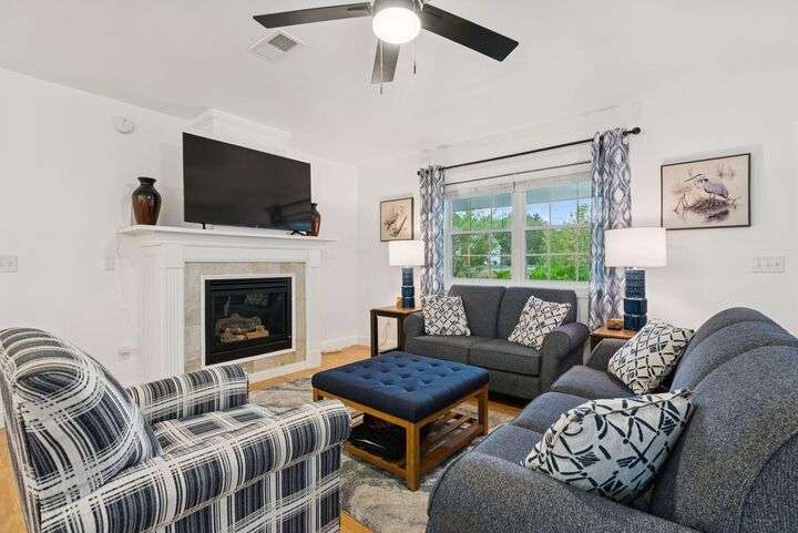 Back on the market for no fault of the house! OPEN HOUSE SAT 11/22 10am - 12pm. Impeccably maintained, single-level living at its finest. This ranch-style 3-bedroom, 3 full bathroom home offers the convenience of single-level living with the added flexibility of a spacious bonus room above the garage. Nestled on a quiet cul de sac just 5 minutes from the I-195 connector, it combines peaceful surroundings with convenient access to downtown Portland and the sandy beaches of OOB and Saco. The 2024 fully remodeled kitchen is a showstopper featuring white shaker cabinets, granite countertops, stainless steel appliances, and all new lighting. The open-concept layout flows seamlessly from the kitchen to the dining and living areas, where a gas fireplace and warm updated flooring create a comfortable atmosphere for hosting guests or lounging. Everything you need for day-to-day living is on the main level, including a primary bedroom with an en suite. When you choose to venture upstairs, the bonus space offers endless options — perfect for guests, a playroom, or a cozy den. A full bathroom and easily accessible storage space complete this level. Outside, you will find a private back deck and cozy back yard space. The front of the lot features a small pond maintained by the neighborhood association— a peaceful retreat complete with a family of ducks.