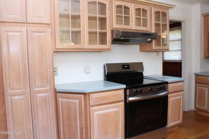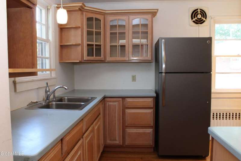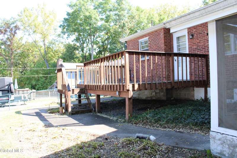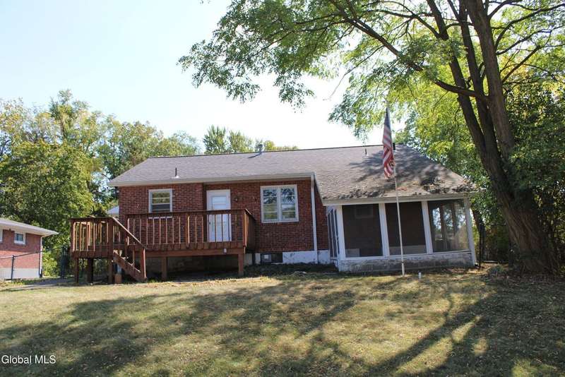 Solid brick ranch home in a great neighborhood on a dead end street. Enjoy the spacious LivingRoom with hardwood floors, fireplace & dining area. Eat in kitchen nicely updated with quartz countertops & tons of cabinetry. Three bedrooms, the third bedroom currently used as laundry room. Large open full basement. Updated heating system. Enjoy the Large backyard, partially fenced from the screened porch(sold as is) or from the deck. Conveniently located just minutes to Albany, minutes to train station & so much more!
