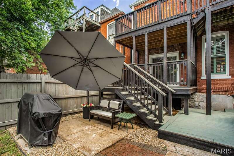 SIGNIFICANT PRICE DROP! Beautifully renovated home in the Historic Shaw Neighborhood. Built in 1902 in anticipation of the 1904 World's Fair, this home has been extensively renovated in recent history. New landscaping in the front yard. The 1st floor has an amazing open floor plan, with two exposed brick walls, beautiful shutters for privacy and new white oak wood floors in 2020. Gas fireplace in the living room. The kitchen is fully equipped with with stainless steel appliances, granite counter tops and tons of cabinets. The mill work in the home includes 8 inch baseboards throughout. And you will find tons of storage on every floor. Second floor has two en suite bedrooms with walk-in closets; one with access to an expansive 2nd floor balcony and one with a Murphy Bed, making it a wonderful space for an office AND a guest room. Laundry is conveniently located on the 2nd floor. Two more spacious bedrooms and a full bath on the 3rd floor. The home has Dual-Zoned HVAC and water heaters. The backyard has multilevel decking, walkout basement access, 6 foot fence and a detached 2 car garage. This home really does have everything to live a great urban life. It's just one block from Tower Grove Park and all it has to offer. You will not be disappointed.