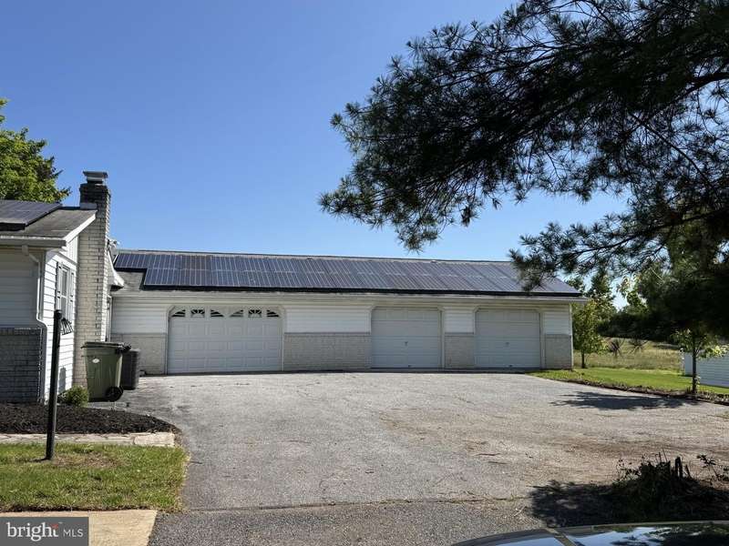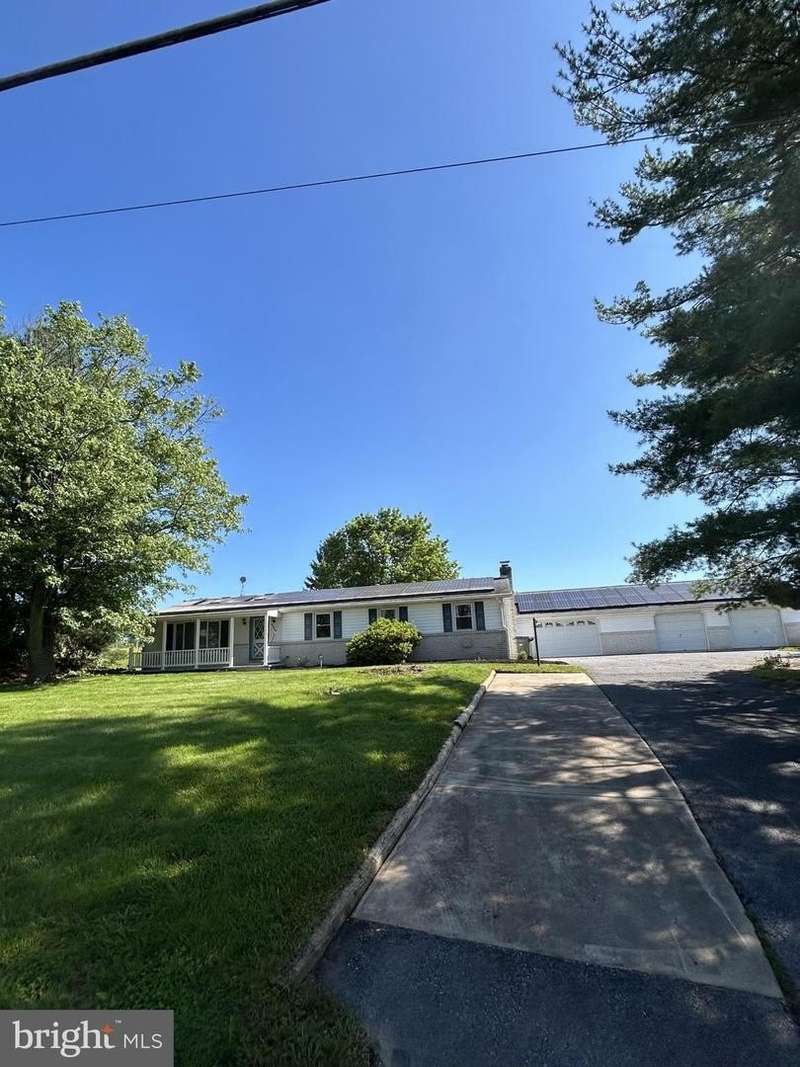Spacious 4 bedroom rancher nestled on a serene .91-acre lot with pastoral rural views. Features a country kitchen with large island and abundant cabinetry, skylights, vaulted beamed ceilings in the living room, sunroom with main-level laundry hook-up, and a huge family room with stone fireplace (propane hookup) and custom built-ins. Enjoy a 4-car attached garage, large run-in shed, covered front porch, solar panels, and an open, usable yard. Ideal blend of comfort, space, and peaceful country living. Being sold AS-IS.