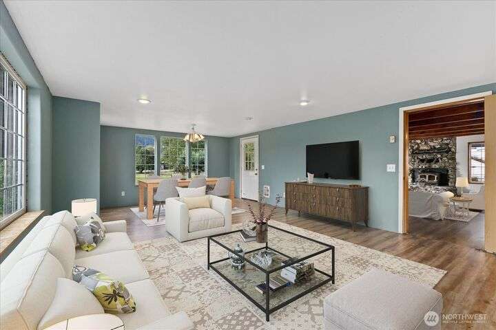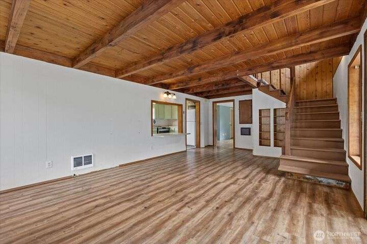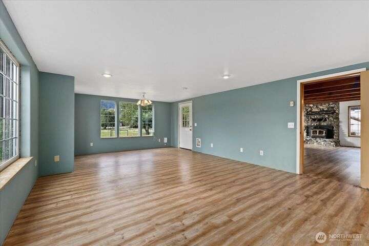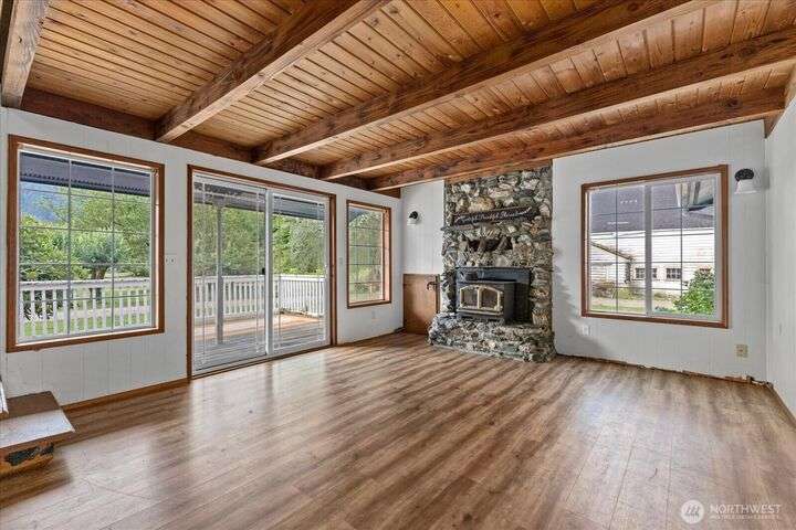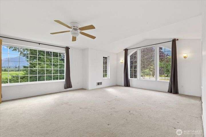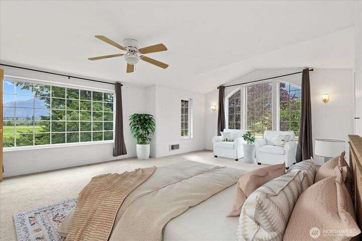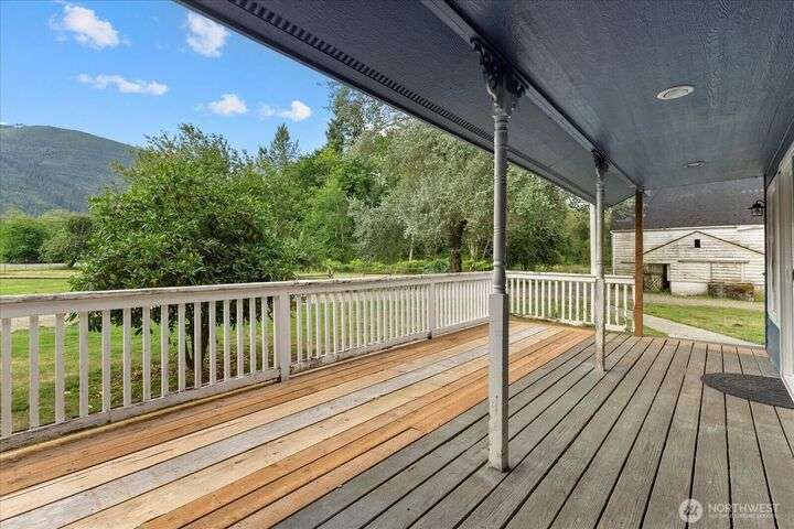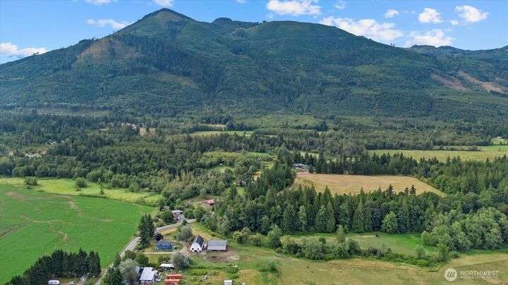 Enjoy peaceful country living on this spacious level 10-acre Farm! New Roof, Siding & Exterior Paint! 2- story home w/ tongue & groove ceilings w/ beams, woodstove & laminate flooring. Country kitchen, living, dining & family room. 4 bedrooms including the primary w/ its own 3/4 bath & walk-in-closet. Vintage dairy barn with loft, 5 stall horse barn, chicken coop, orchard, garden area & vast open pastures ~perfect for horses, cattle, goats etc. The detached 896 sq. ft ~2-car garage/shop or a possible Multi-Generational/ DADU/MIL. Privacy abounds w/ picturesque Mountain views & Morgan Creek bordering the south side of the property. No flood insurance needed. Room for your RV's & all your Toys. Ready for your TLC w/ so many possibilities.
