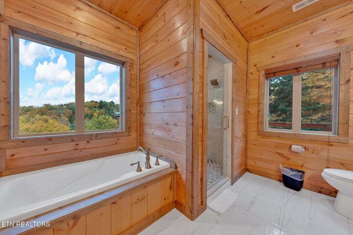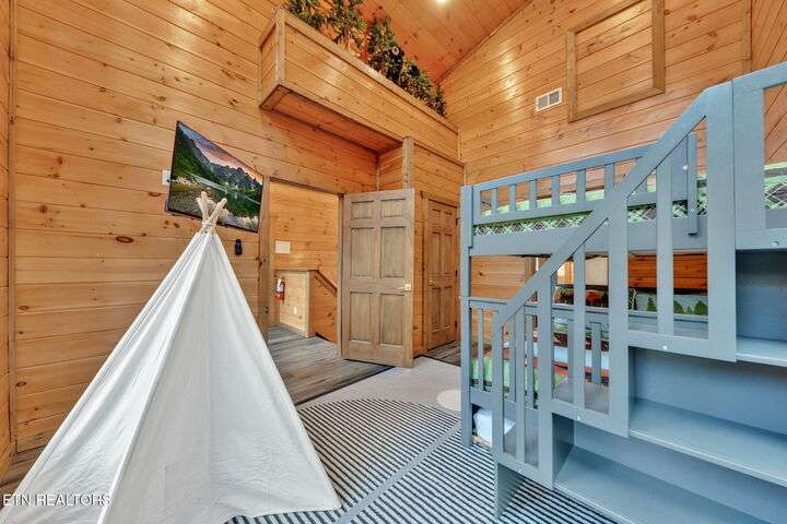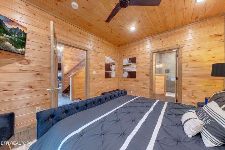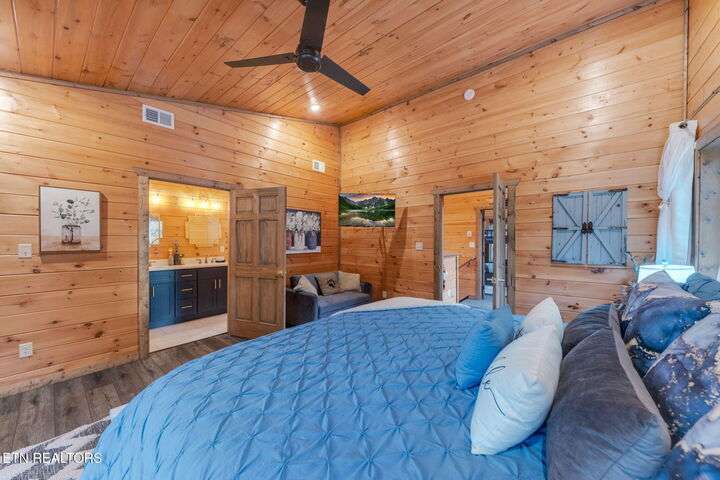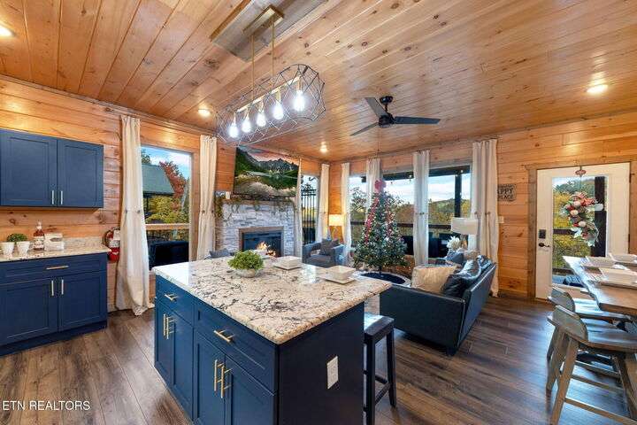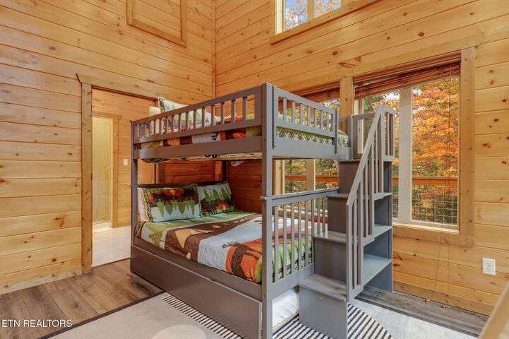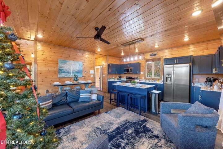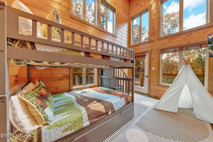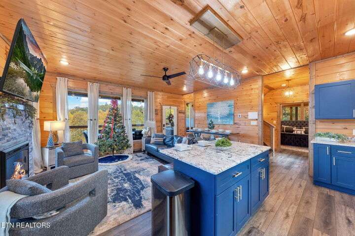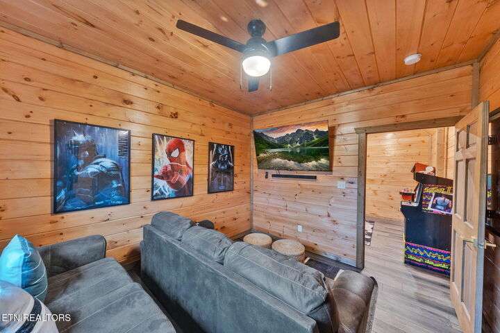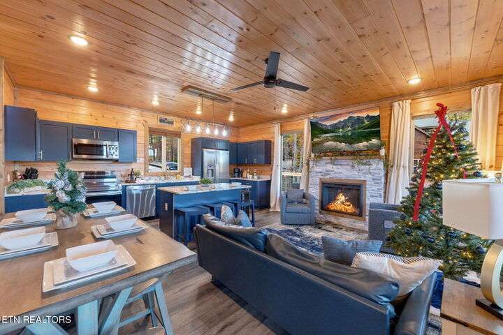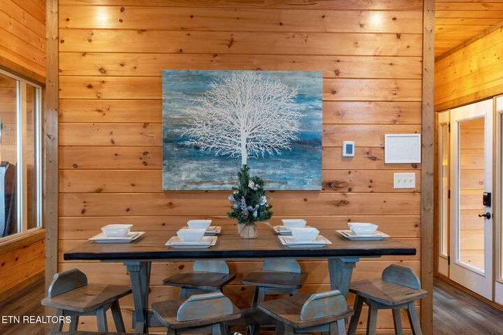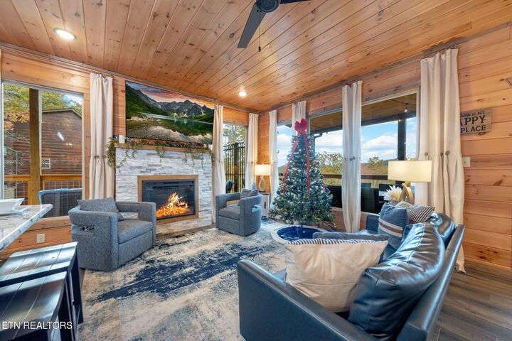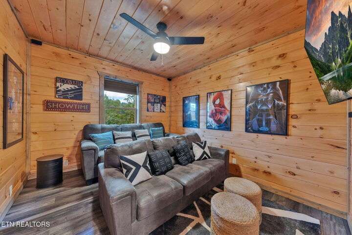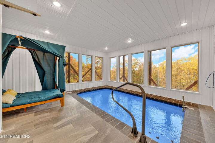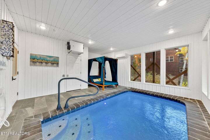 Welcome to Cup Runneth Over, a beautifully designed cabin built in 2023 and perfectly situated in the heart of Wears Valley! This 3-bedroom, 4-bath retreat offers the perfect blend of modern comfort and Smoky Mountain charm. Two spacious king suites and a bunk suite each feature their own private bathrooms with elegant walk-in showers and double sinks, while the main-level king suite also includes a luxurious double-head walk-in shower. The open-concept living area flows seamlessly into the kitchen and dining spaces, all overlooking breathtaking views of the Great Smoky Mountains. Step outside to enjoy the wrap-around covered porch, complete with a relaxing hot tub, or head downstairs to the heated indoor pool, theater room, and game room—all conveniently located near another full bathroom, laundry area, and plenty of space for fun and relaxation. Practical upgrades include a water softener system located in the crawl space and a 14-50 NEMA outlet, making this property electric-vehicle friendly. Located in one of the most desirable areas of Sevier County, Cup Runneth Over is just minutes from top attractions like Dollywood, The Island in Pigeon Forge, Anakeesta, Ober Mountain, The Great Smoky Mountains National Park, and Downtown Gatlinburg. Enjoy local favorites such as The Apple Barn, Paula Deen's Family Kitchen, The Old Mill District, and SkyLift Park, or take a scenic drive along the Foothills Parkway and Wears Valley Road for breathtaking mountain views and local artisan shops. With great Wi-Fi and cell service, this cabin functions beautifully as both a successful short-term rental and a cherished second home. Whether you're looking for an investment, a family getaway, or both—this stunning Smoky Mountain retreat truly has it all!