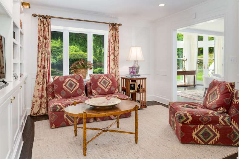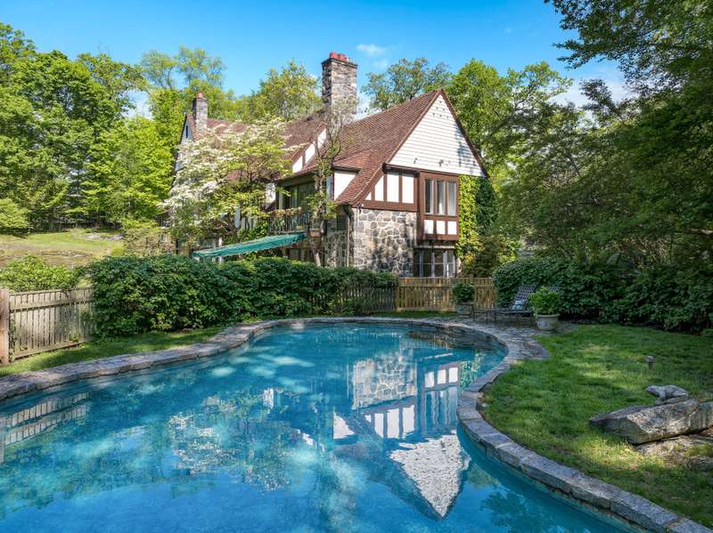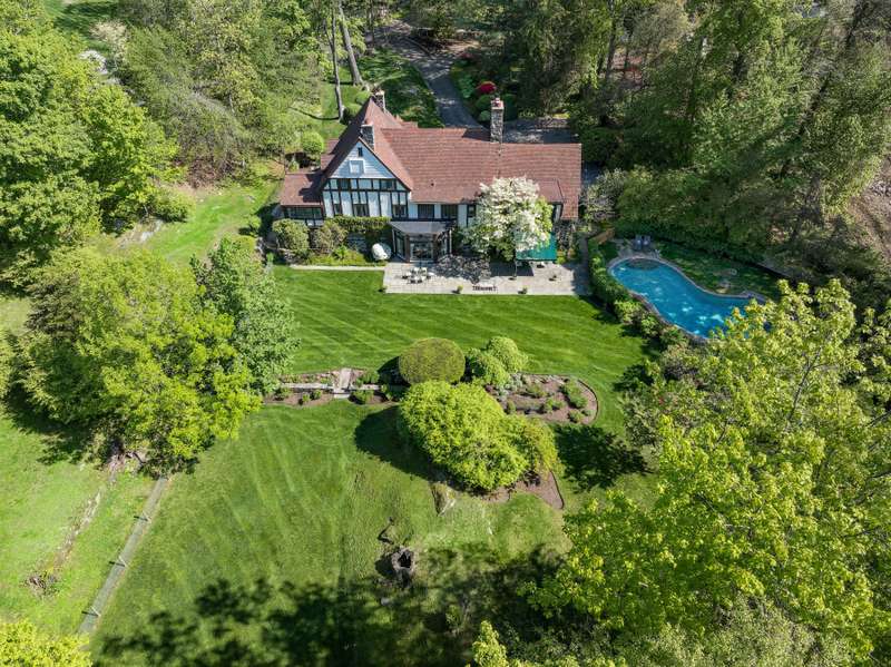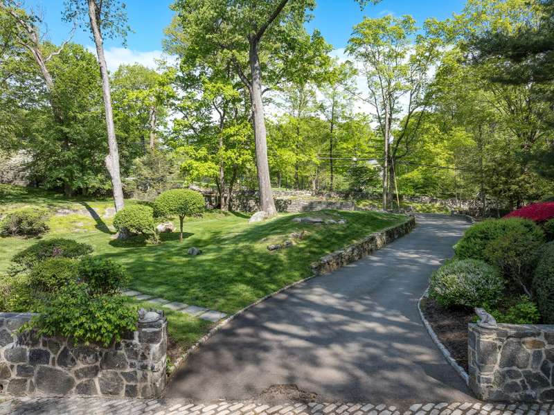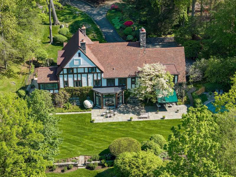 78 Khakum Wood occupies a premier position in one of Greenwich's most distinguished private enclaves. Originally envisioned by Newton Phelps Stokes and developed in collaboration with the renowned Olmsted Brothers, this exceptional property is set on 2.95 beautifully landscaped acres. The residence showcases its charming Tudor architecture with the characteristic pitched gabled roof, decorative wood, stonework and leaded windows. A sweeping Belgian block courtyard and stone walls offer a discreet and elegant approach. Inside, a gracious vestibule opens to expansive, light-filled living spaces. French doors connect seamlessly to the sunlit terrace and curated gardens that complement the natural topographyoffering privacy, beauty, and a sense of enduring sophistication.