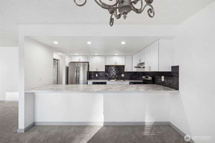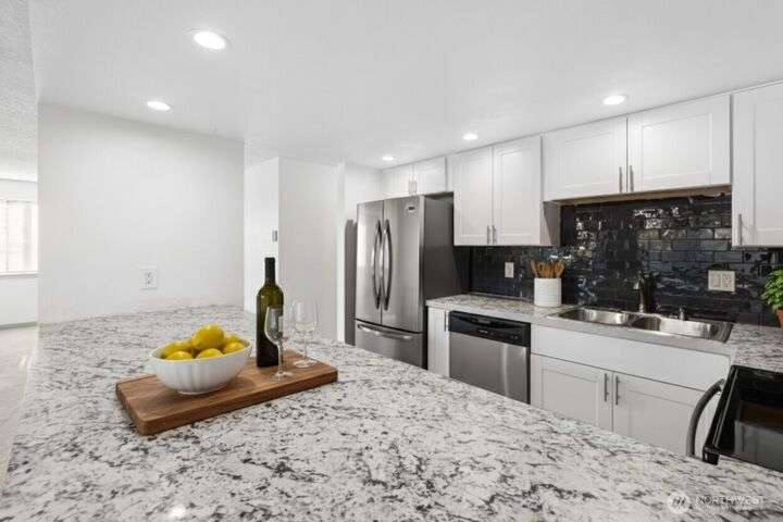 Step into this beautifully refurbished Bremerton condo offering a modern yet homey feel with brand-new flooring, bathrooms, and kitchen cabinets, appliances and finishes. Enjoy an open floor plan where the kitchen flows into the dining and living area, complete with a cozy fireplace and a private patio that offers peek-a-boo water views. Situated at the quiet end of Park Avenue with generous guest parking and lovely landscaping, this home offers waterfront community perks at an affordable price point. Plus, there's an over-sized utility room for extra storage or flexible use. Come see how comfort meets convenience just around the corner from Olympic College, PSNS, Seattle Ferries and Evergreen Rotary Park, right by the water!