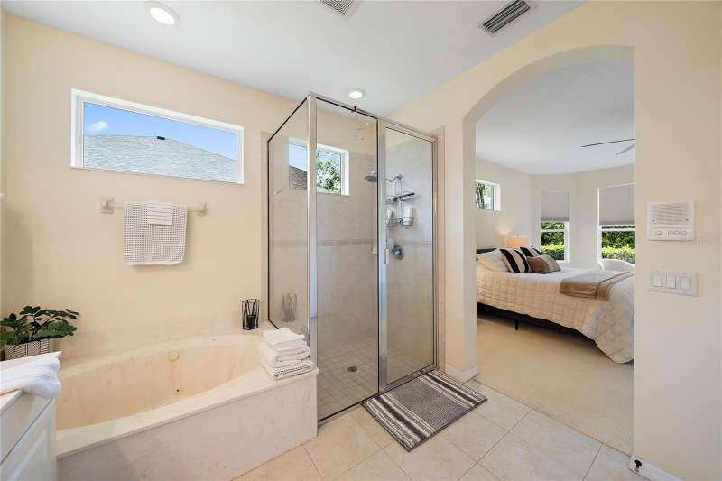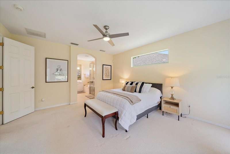 Now offered at $466,500 with a $5,000 seller credit toward buyer closing costs. This 3 bed / 2 bath home offers 1995 sq ft on an 8,002 sq ft corner lot. Features include a new roof (2025), 12-ft ceilings, and a light-filled open plan with generous living and dining spaces. The kitchen has white cabinetry and a bright breakfast nook. The primary suite includes an oversized walk-in closet and a spacious ensuite with dual vanities, private water closet, walk-in linen closet, walk-in shower, and soaking tub. Additional highlights: water heater (2022), a well-appointed separate laundry room, and a 2-car garage with overhead storage racks. Mature tropical landscaping with lots of lush. Located in Harborage on Braden River—a gated, Key West–inspired community where lawn care is included and no flood insurance is required.About ~272 ft from the home, enjoy a clubhouse, heated pool & spa, fitness center, kayak launch, preserve walking trails, dog park, playground, and a full calendar of activities (game night, yoga, water aerobics). Johnson Preserve (44 acres of protected habitat) is nearby.