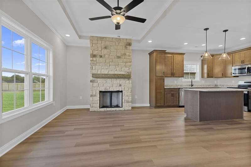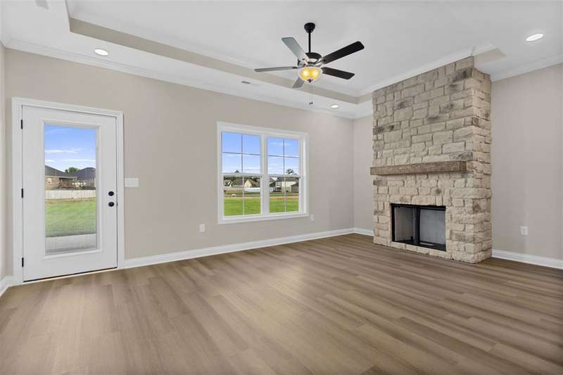 New construction in McLellan Crossings, The Timberland plan offers 4 bedrooms, 2 full bathrooms, and a spacious open concept. The great room features a stone accented gas log fireplace flowing seamlessly into the kitchen and dining area, creating the perfect space for everyday living. The primary suite includes a tray ceiling, walk-in closet, and a spacious bath with a tile surround tub and separate shower with glass enclosure. Enjoy the covered front and back porches, and a two-car garage. Financing incentives available with the builder???s preferred lender. This home includes a 10- year Builders Warranty. Reach out today to schedule your showing! Some photos, including grass repair or landscaping, may be virtually staged or rendered for illustrative purposes only.