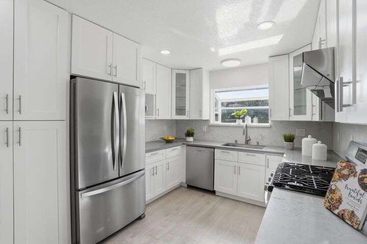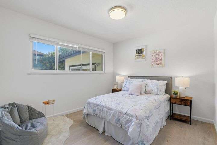 Welcome home to this inviting single-level residence nestled on a well-sized parcel in the heart of the neighborhood. A charming front yard and covered entry lead you into a bright living room anchored by a wood-burning fireplace and expansive front-facing window. The seamless flow takes you into a cozy dining area and a kitchen featuring an island, plenty of prep space, and direct access to the backyard, ideal for indoor-outdoor living. Down the hallway, there are nicely proportioned bedrooms, each offering a comfortable layout with ample natural light, and a full bath serves the living areas and bedrooms. Outside, the rear yard is a fully fenced expansive yard with mature landscaping and generous open space for entertaining, gardening or future expansion and tons of potential for almost any plan. With a two-car attached garage, wide drive and extra parking at the curb, convenience accompanies comfort. Located with quick access to major freeways, outdoor recreation, and a growing selection of retail and dining, and easy proximity to outdoor recreation including trails and bayfront open space that residents already treasure. This is a home with both immediate livability and meaningful upside for those seeking style, space and location in one package.