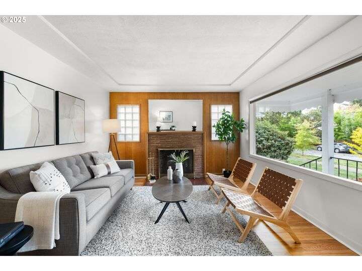 Open Sunday, 10/12/25 from 1pm-3pm. The main floor features two comfortable bedrooms and a full bath, along with a formal living room anchored by a fireplace, a bright dining room, and a cheerful kitchen with a sunny eating nook. Fresh interior paint and hardwood flooring has just been refinished, adding warmth and shine to the home’s original character. Upstairs you’ll find a third bedroom with extra space for guests, hobbies, or a home office. The lower level has vintage knotty pine character, complete with a family room and fireplace, full bathroom, laundry room, and generous storage. It’s the perfect spot for game nights, movie marathons, or simply hanging out. Outdoors features a fun screened-in back porch that lets you enjoy summer evenings bug-free while overlooking a private backyard ready for your planting additions. A detached two-car garage adds even more value and flexibility. With nearby parks, schools, shopping, and cafés just blocks away, this community offers comfortable living and convenience. [Home Energy Score = 1. HES Report at https://rpt.greenbuildingregistry.com/hes/OR10242181]