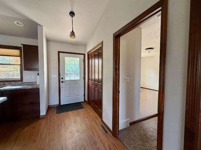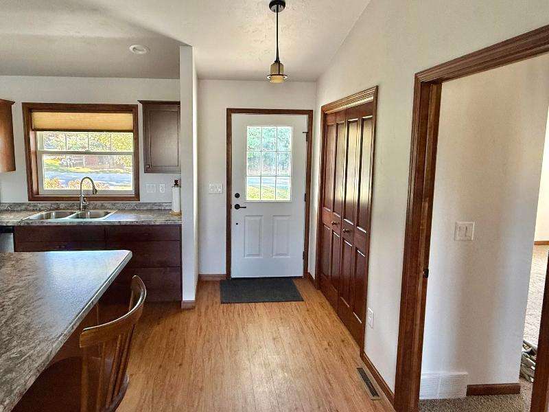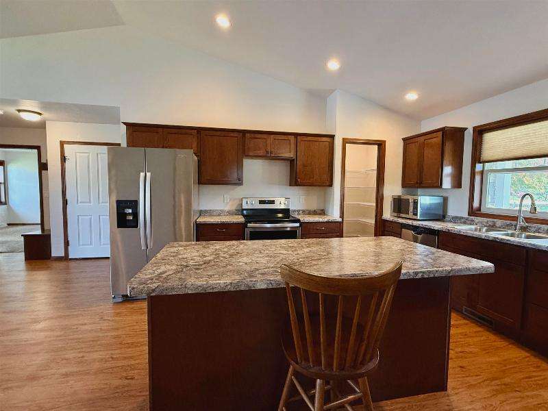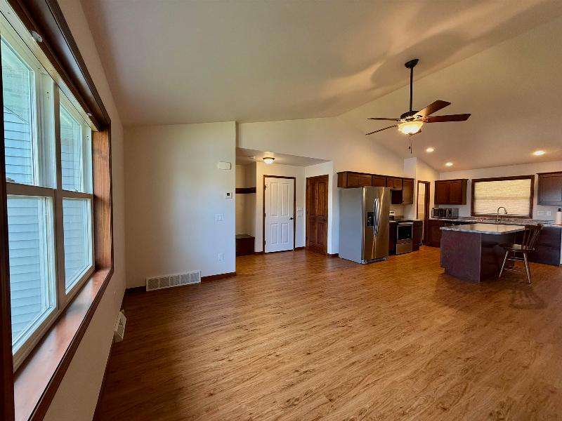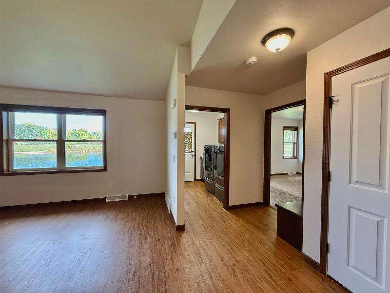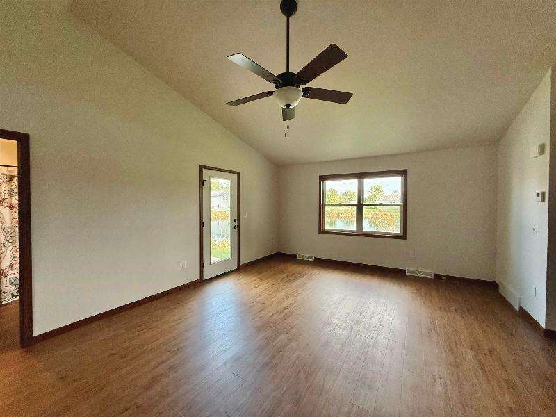 This 2 bedroom, 2 bath, zero entry design ranch sits right on the pond with beautiful views! This home offers an open concept design with an abundance of natural light. Kitchen has rich colored cabinetry, pantry and island. Main level laundry, solid paneled doors and walk-in closets in BOTH bedrooms. The basement is a blank canvas waiting for your design expertise...it's stubbed for an added bathroom and has a radon mit. system already installed. The 2 car attached to garage is drywalled. This is a one owner home that has been wonderfully maintained. Restricted covenant apply for Hunters Pond subdivision along with a yearly HOA fee