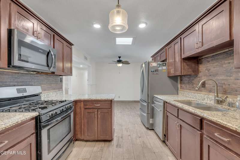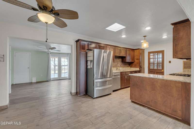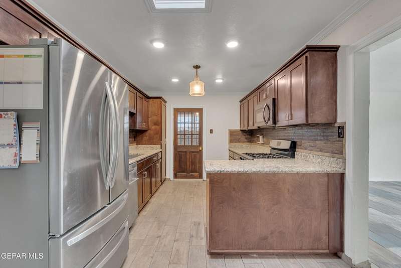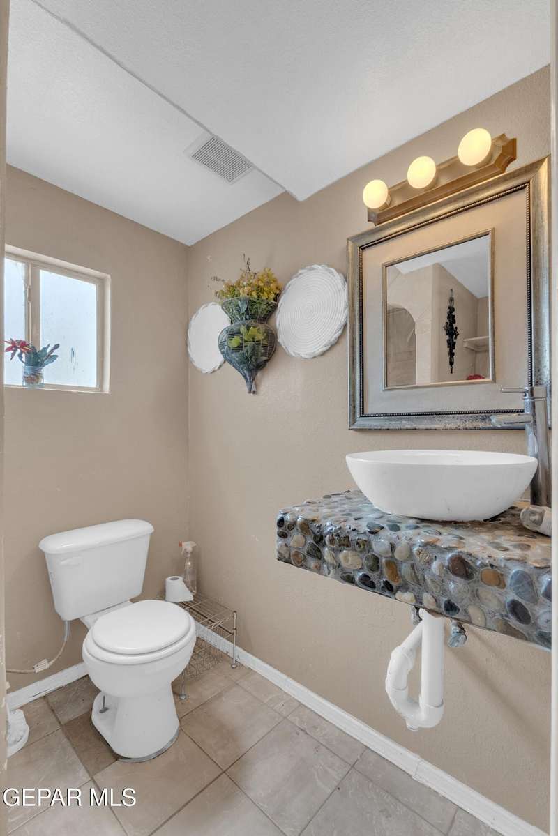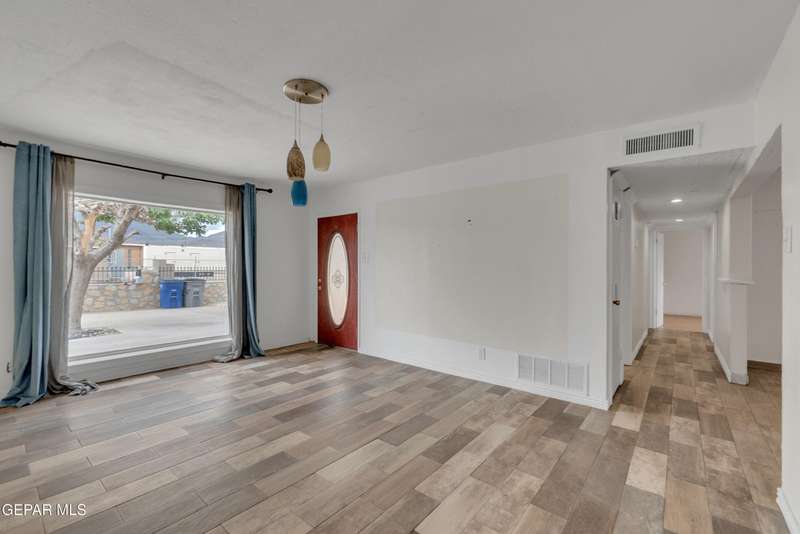 Welcome to this versatile home offering 3 bedrooms and 1.5 baths per records, with additional finished areas that provide the functionality of a 4-bedroom, 2.5-bath layout. While the additions were not permitted by the city, they include a bonus living room, laundry room with three-quarter bath, and an extra room with its own window unit and private exterior entrance. The kitchen features granite countertops, custom cabinetry, and a stainless steel French door refrigerator. The master bedroom has its own half bath, and the home has no carpet throughout. Outside, enjoy a gated property with a rock wall, wrought iron entry, long carport, low-maintenance landscaping, storage room in back, and mountain views from the front. An exterior door was added for the bonus room. The home does need some cosmetic updates and comes with solar panels paid off at closing. Conveniently located near Hercules, Diana, Railroad Dr., and Highway 54.
