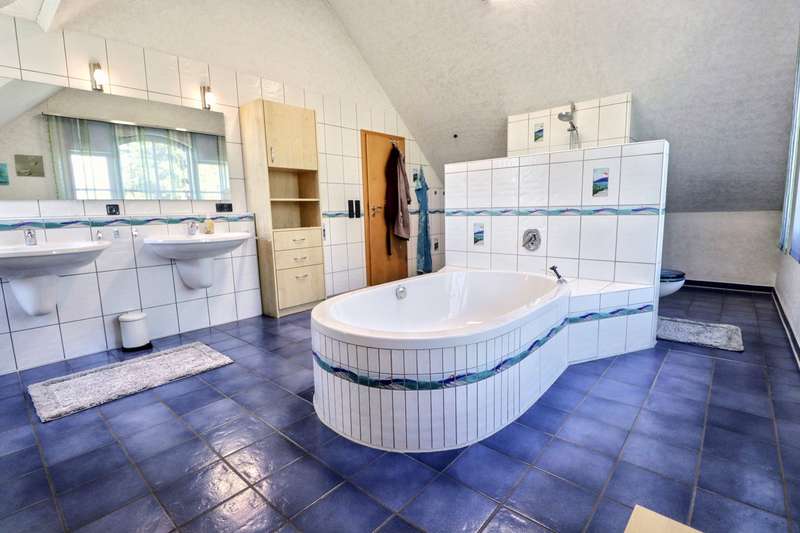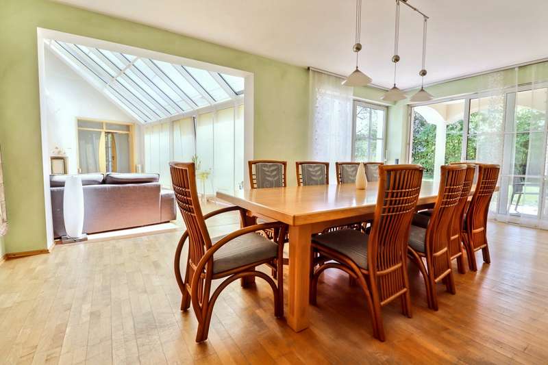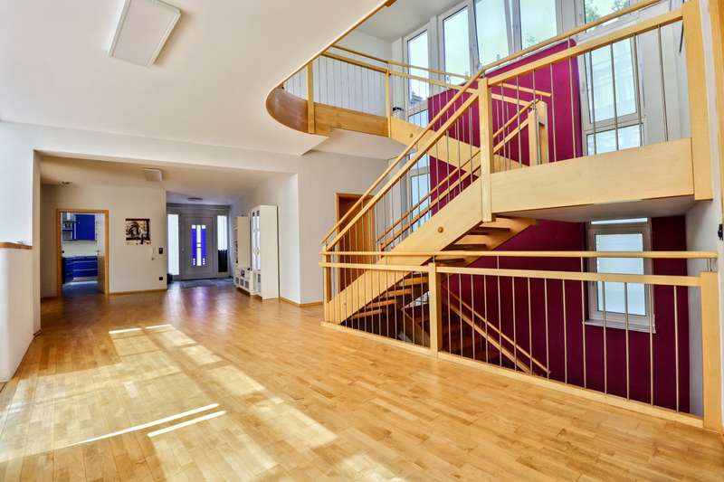 This detached family home offers plenty of space, light and living comfort in a quiet location. The spacious living area with conservatory creates a pleasant feel-good atmosphere - here, indoor and outdoor areas merge into a harmonious whole. A modern air heat pump ensures efficient and sustainable heating. The lovingly landscaped garden with terrace and private swimming pool invites you to relax. The open-plan living and dining area, utility room, guest WC and direct access to the garden are located on the first floor. The top floor boasts a master bedroom with dressing room, children's room and guest room, two bathrooms, gallery and study. The house has a full basement and, with a large hobby room, guest room, utility room, cellar and utility room, offers a variety of uses and plenty of space. A garage, utility room and additional ground floor rooms complete the generous space on offer. A home with character, comfort and potential - ideal for families who want to combine spacious living with modern technology and proximity to nature. Curious? Give us a call or send us an inquiry right away on 09131 / 82 89 000.
