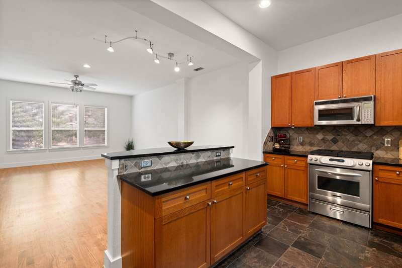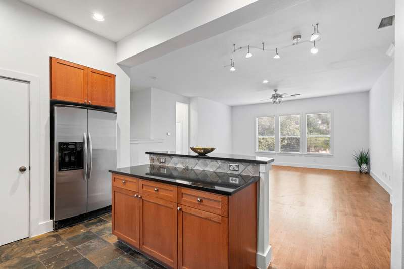 Extensively updated 2 bedroom 2 full bath condo + half bath with bonus living-flex space on 3rd floor & additional flex space in the primary bedroom as well as private balcony. Updates include recent paint throughout, refinished and stained wood floors, cleaned and polish slate flooring, 2 Trane HVAC units installed in 2017 with parts warranty until 2027, LED lightbulbs throughout. Oversized primary with additional space for a sitting area or office space and two closets. Ensuite bath with water closet, dual vanities, separate soaking tub and shower. Open bonus space on third floor great for second living area or large study. Backyard renovation and landscaping including staining at fence, and more! You do not want to miss out on this open and flexible floorplan. Home is priced below appraised value! Refrigerator to convey.The gated community is conveniently located minutes from the Medical District and downtown, with easy access to major roads and highways, shopping, dining and more.