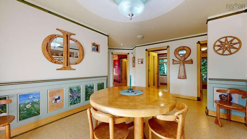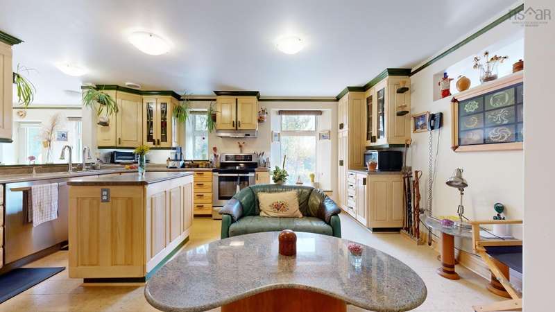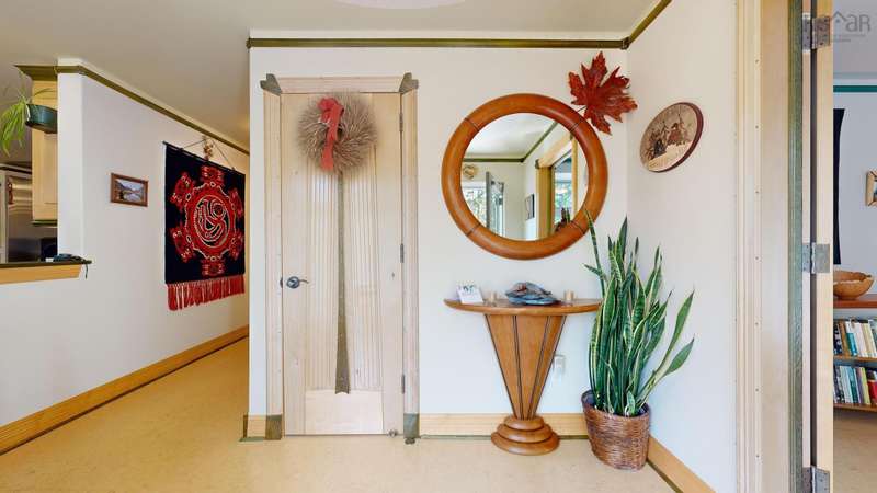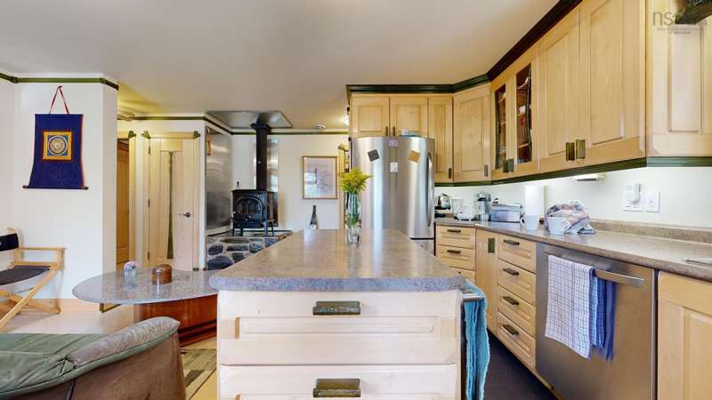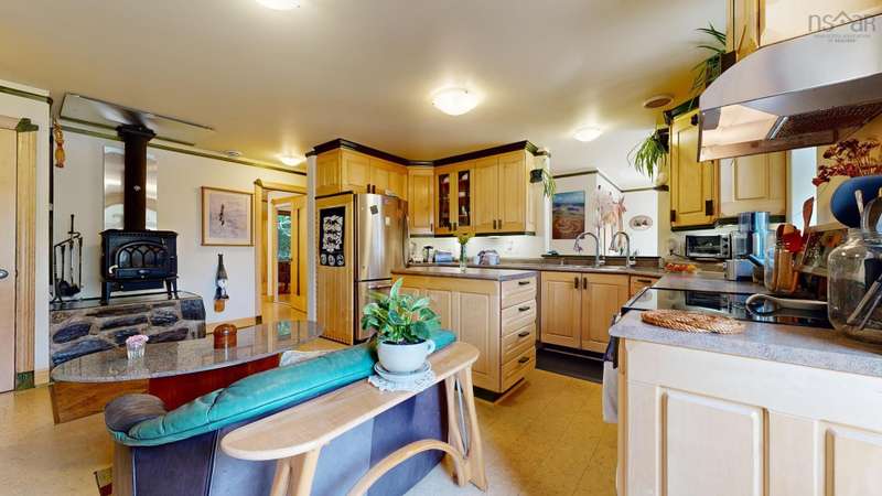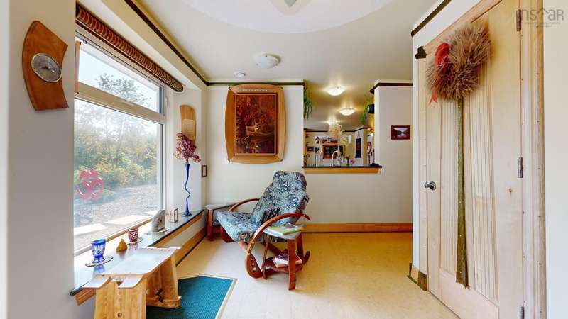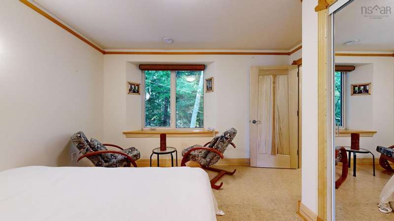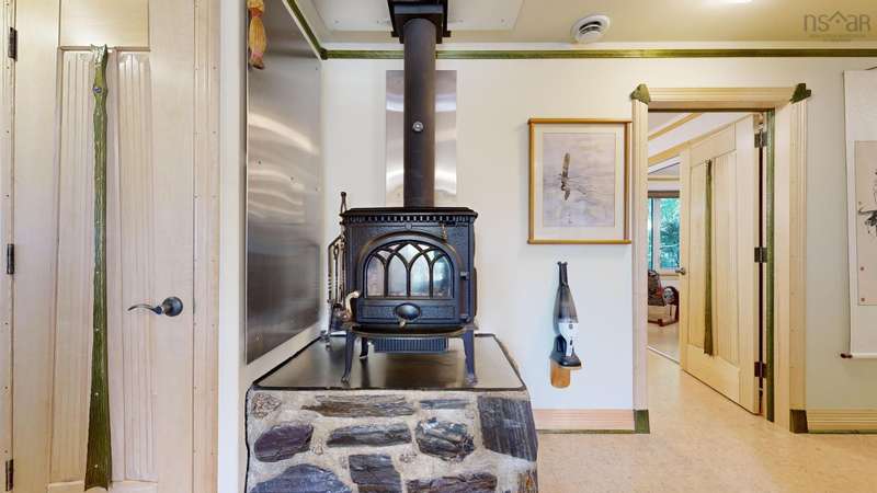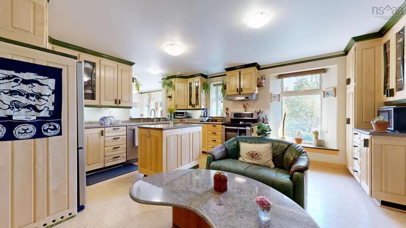 Exceptional opportunity,15 minutes from services. Built as an intentional retirement home, wheelchair accessible, on a wooded mountainside 5-A lot, offering extraordinary winter sunrises, Valley & North Mtn views; a perfect blend of sustainable living and quietude. Passive solar = south facing triple-glazed windows and doors, double the building code blown cellulose insulation R80 attic, R60 walls & R20 floor + 2 layers of drywall for thermal mass, on a low-maintenance CDN cork tile floor. 2 bedrooms + 2 spare rooms. Inexpensive to heat & cool. All interior cabinetry, trim, shelving & doors are NS hardwood, artistically crafted by the owner. A 6-piece ensuite ensures luxury. Additional features include: ductless heat pump 2025, attached single-car garage, carport, HT wired LR, Cape Cod wood siding, workshop with private entrance could be a home office, cold room, closets galore, 94 Mbps fiber optic service, NS sunburst gable ends, steel roof, fenced organic vegetable garden, & pond with 2 streams. The drilled well provides ample water at 15 GPM.This is a unique moment, perfect for those seeking tranquility and ecological living; a home in a serene setting, rarely seen, let alone offered.