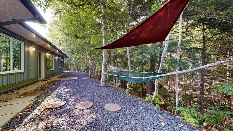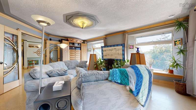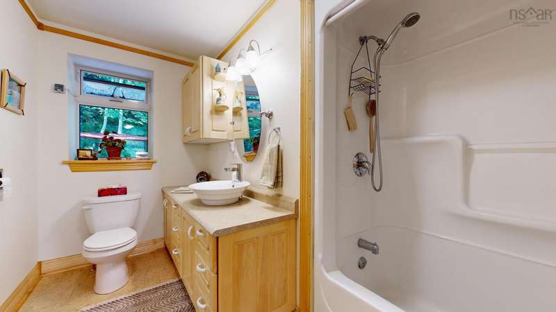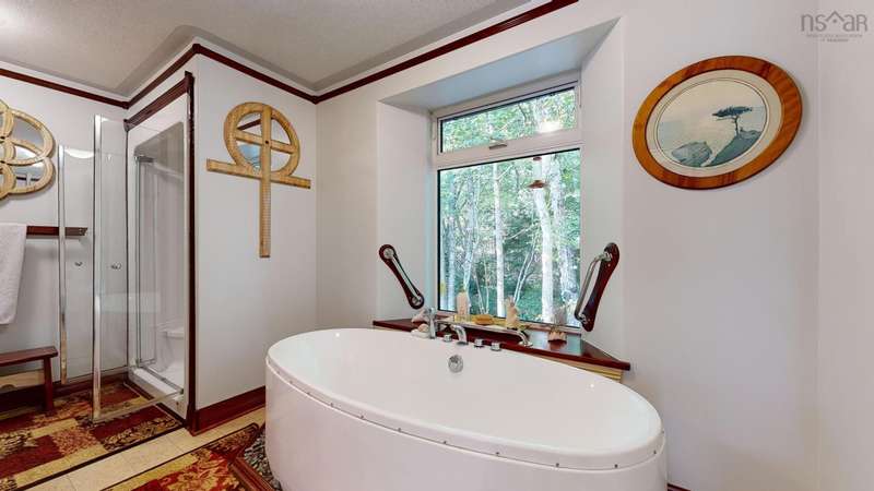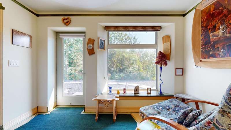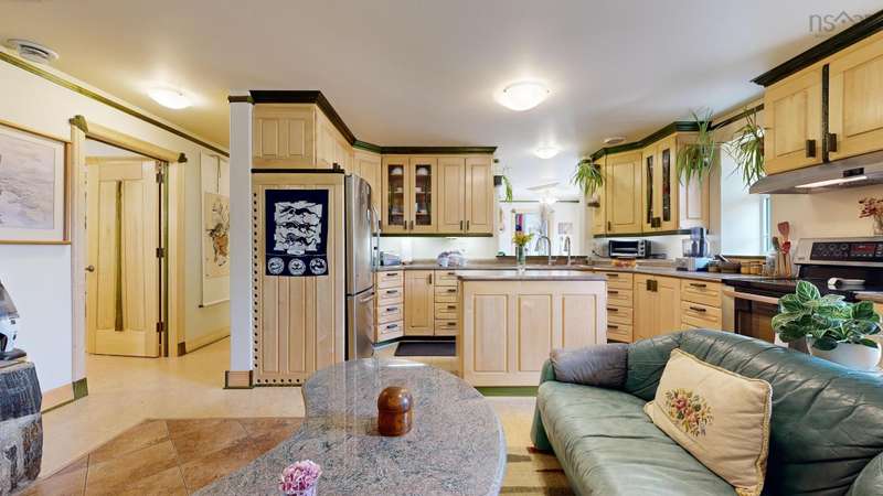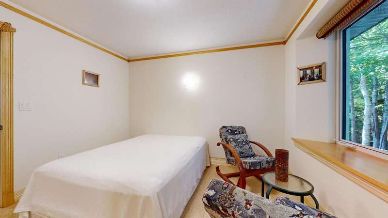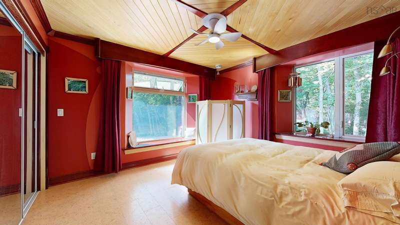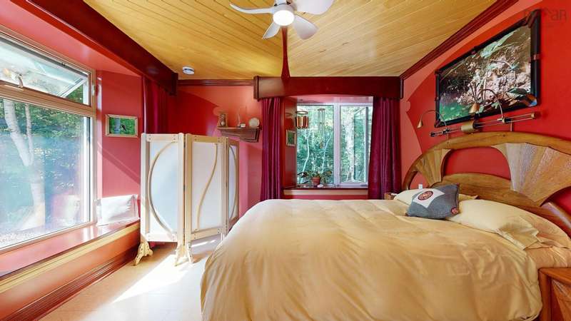 Exceptional opportunity,15 minutes from services. Built as an intentional retirement home, wheelchair accessible, on a wooded mountainside 5-A lot, offering extraordinary winter sunrises, Valley & North Mtn views; a perfect blend of sustainable living and quietude. Passive solar = south facing triple-glazed windows and doors, double the building code blown cellulose insulation R80 attic, R60 walls & R20 floor + 2 layers of drywall for thermal mass, on a low-maintenance CDN cork tile floor. 2 bedrooms + 2 spare rooms. Inexpensive to heat & cool. All interior cabinetry, trim, shelving & doors are NS hardwood, artistically crafted by the owner. A 6-piece ensuite ensures luxury. Additional features include: ductless heat pump 2025, attached single-car garage, carport, HT wired LR, Cape Cod wood siding, workshop with private entrance could be a home office, cold room, closets galore, 94 Mbps fiber optic service, NS sunburst gable ends, steel roof, fenced organic vegetable garden, & pond with 2 streams. The drilled well provides ample water at 15 GPM.This is a unique moment, perfect for those seeking tranquility and ecological living; a home in a serene setting, rarely seen, let alone offered.