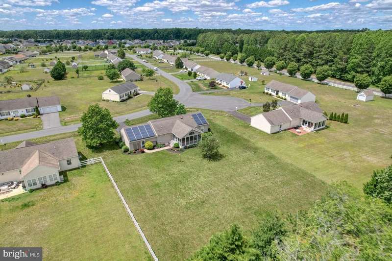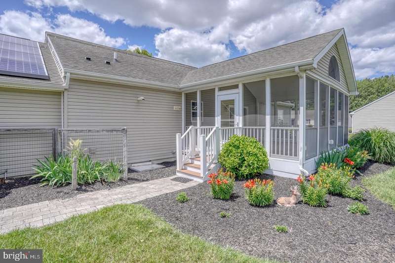 NEW HVAC & CARPETS! - Private Lot & Screened Porch! Welcome to this beautifully maintained ranch-style home nestled in the desirable Heron Bay community of Lewes, Delaware. Situated on a private, half-acre lot, this 3-bedroom, 2 bath home offers the perfect blend of comfort, efficiency, and community living. Inside, the split floor plan offers ideal privacy, featuring a spacious primary suite with ensuite bath, separated from the additional two bedrooms. The open-concept living area flows seamlessly into a well-appointed kitchen and dining space, perfect for entertaining or relaxing at home. Enjoy morning coffee or evening breezes on the screened-in porch, overlooking the peaceful backyard. Energy-conscious buyers will appreciate the home's solar panels, reducing utility costs and promoting sustainability. All new carpets installed, new HVAC-both a gas heater & central air, and a fresh fall landscape clean up! Heron Bay residents enjoy access to a range of community amenities including a clubhouse, swimming pool, tennis courts, and playground-all just minutes from the beaches, shopping, and dining that make Lewes a sought-after destination. Don't miss your chance to own a well-kept, move-in-ready home in one of the area's most welcoming neighborhoods! Solar lease is currently $81.39 a month, electric bill after is appx $28/monthly. Home also has an irrigation system with dedicated well, and additional low voltage lighting.