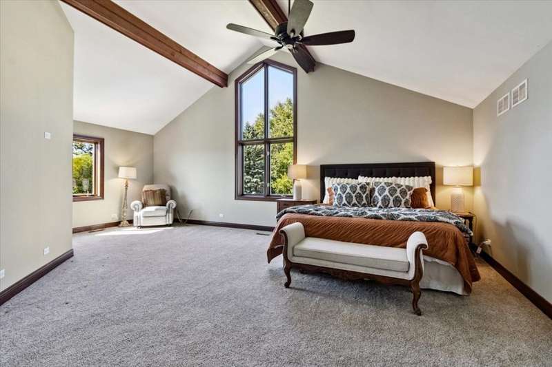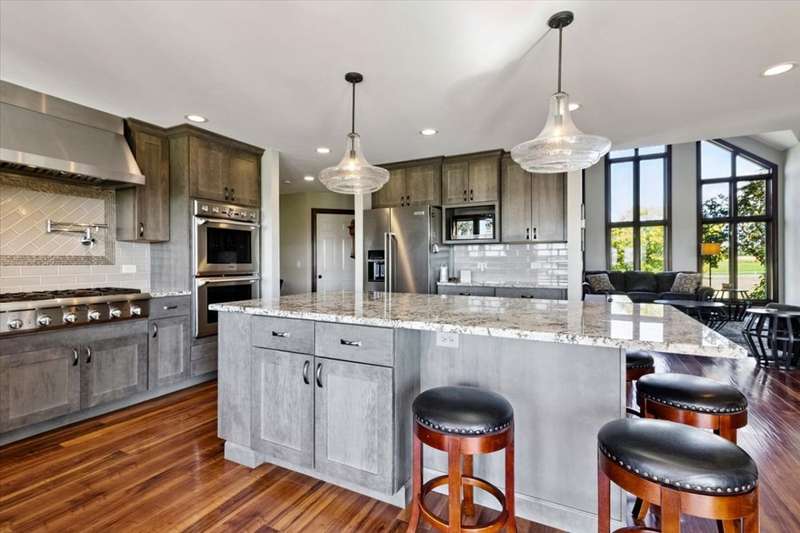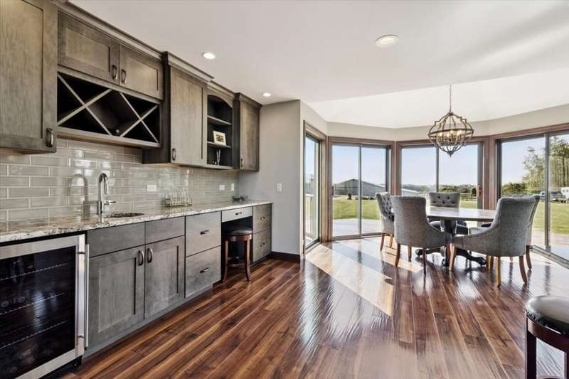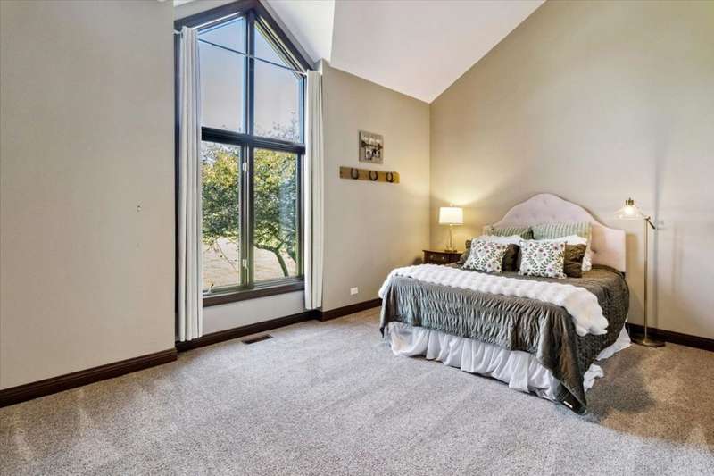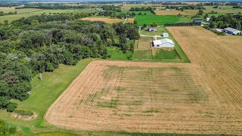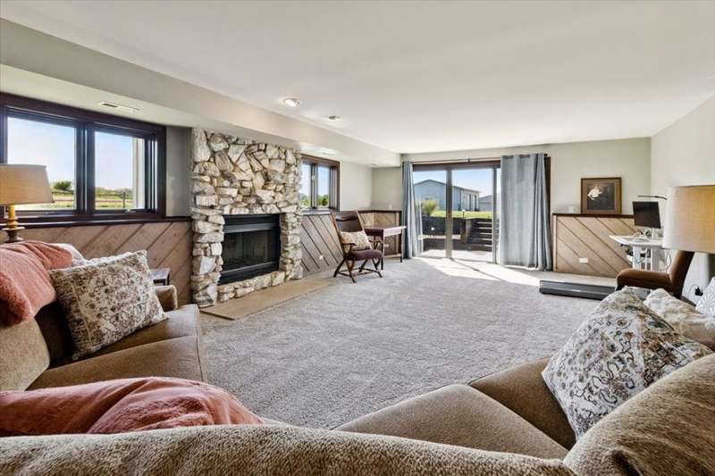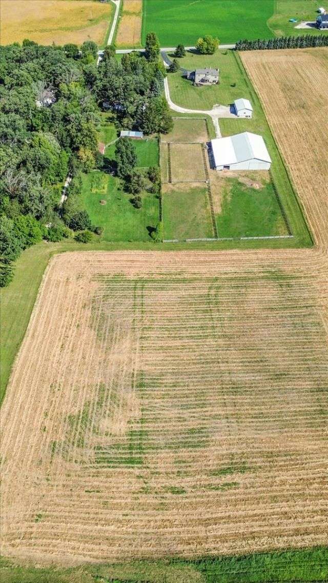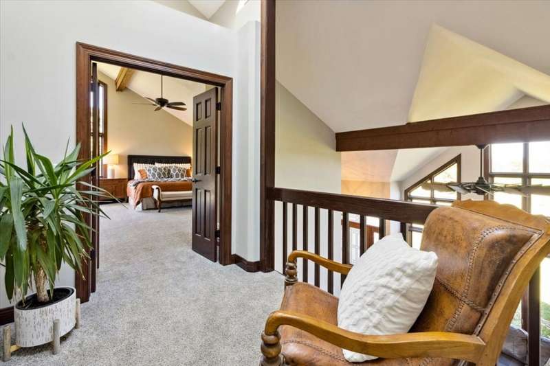 This extraordinary Airhart Contemporary home combines modern architecture with top-tier equestrian amenities on over 9 acres of rolling countryside. Designed with an open floor plan, the home showcases cathedral and vaulted ceilings, wood floors, and a dramatic living room with a wall of windows and striking fireplace, creating a bright, welcoming space that blends seamlessly with the outdoors. The newer upgraded kitchen remodel shines with stainless steel appliances including a double oven, stovetop with pot filler, and stainless vent hood. A large island doubles as a breakfast bar and additional storage, while abundant can lighting adds both function and style. The kitchen also features a gorgeous butler's pantry with beverage refrigerator, flowing into the atrium-style sunroom/dining room with tranquil views of the rolling property. Step outside to a large deck, ideal for entertaining while overlooking the pastures. The luxurious master suite includes a sitting area, french doors, spa-like bath with soaking tub, separate shower, double vanity, and walk-in closet. A first-floor laundry adds everyday convenience, while additional bedrooms are spacious and versatile. The lower level features a family room with new carpet, cozy fireplace, and sliding glass doors leading to the patio and deck, perfect for relaxation or entertaining. Oversized 3 car garage with Hot/Cold hydrant for washing cars and equipment. Equestrians will appreciate the thoughtfully designed grounds, including 3-4 oak-fenced pastures and a 96' x 100' horse barn with a 60' x 100' indoor riding arena (14' clearance). The barn is complete with 2 stalls, tack area, wash bay, water and electric, with expansion potential for 9 additional stalls. A separate 4-car garage with electric and water provides ample room for vehicles, equipment, or a workshop. Recent updates include roof, skylights, and gutters replaced in 2024; new 720 ft well in 2021; furnace & air conditioner 2011; hot water heater 2019 with gravity return line; partial barn roof 2018; Water Softner owned. Water treatment system rented, providing peace of mind for years to come. This is a rare opportunity to own a true Airhart masterpiece, blending modern country living with world-class equestrian facilities in one remarkable setting.