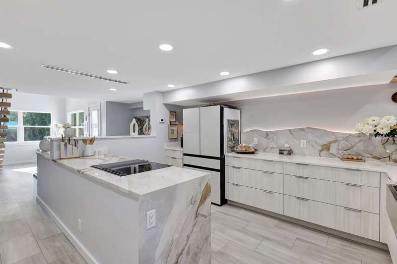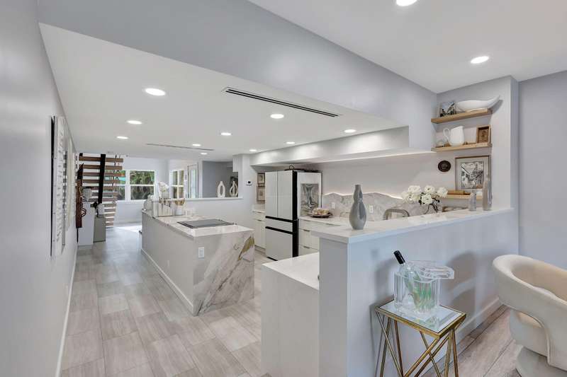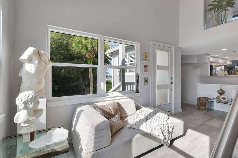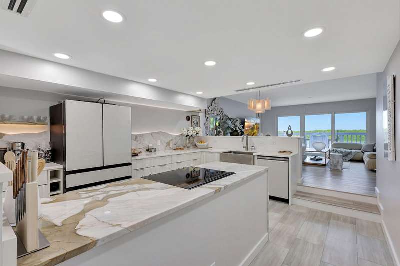 This spectacular, fully renovated riverfront townhome--proudly featured on HGTV's Beachfront Bargain Renovation--redefines luxury with three levels of stylish, turnkey living and the most breathtaking views on North Hutchinson Island.Every detail of this home blends beauty and durability, from the brand-new roof to the all-new impact glass and doors. The open-concept main floor dazzles with a gourmet kitchen, bespoke smart appliances, and stunning Dolomite countertops. Two spacious bedrooms and two elegantly remodeled bathrooms offer unmatched comfort and sophistication. Step outside to three expansive decks, including a private retreat off the master suite, where the unparalleled Intracoastal views will leave you in awe. This is more than a home--it's a rare gem for those seeking lux