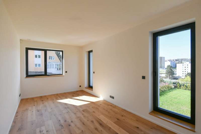 V poslednim t?etim pat?e se nachazi dalsi ložnice (p?ipadn? pracovna) s koupelnou a jižn? orientovanou terasou o velikosti 17,1 m2. Dale jest? dalsi 2 ložnice a technicka mistnost s pradelnou.
