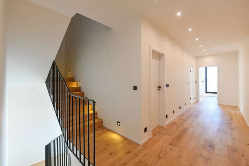 Do pater se prochazi modernim schodist?m, ktere dotva?i celkový styl domu.