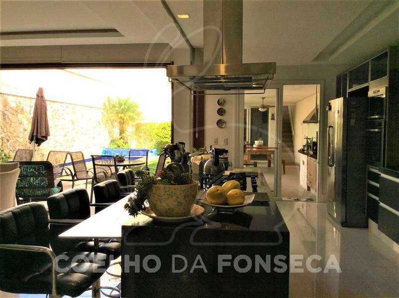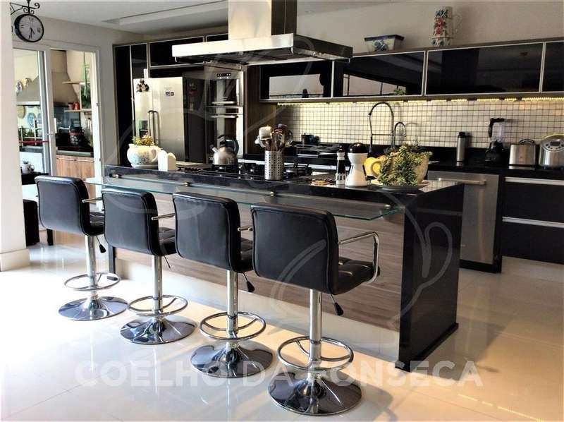 Impecável sobrado novo, arquitetura moderna, completo sistema de automatização, aquecedor solar. Quatro suítes confortáveis, closet, living para três ambientes, sala de TV, escritório, lavabo e jardim de inverno. Cozinha americana, maravilhoso espaço gourmet, piscina com cascata e cinco vagas de garagem.