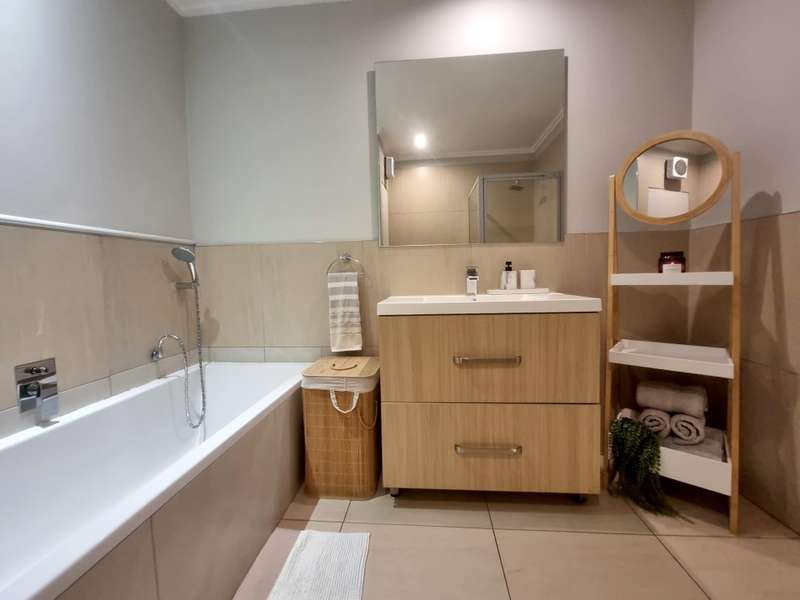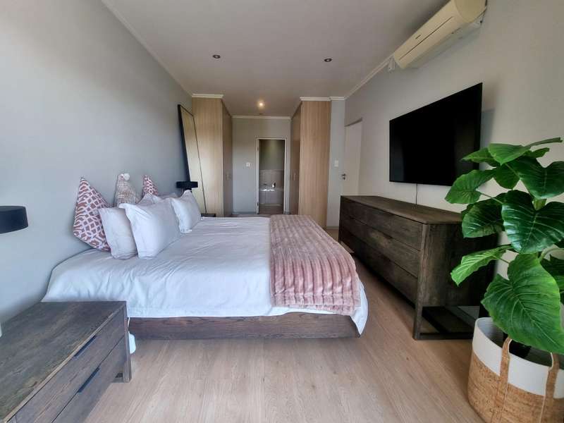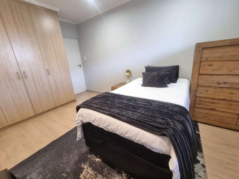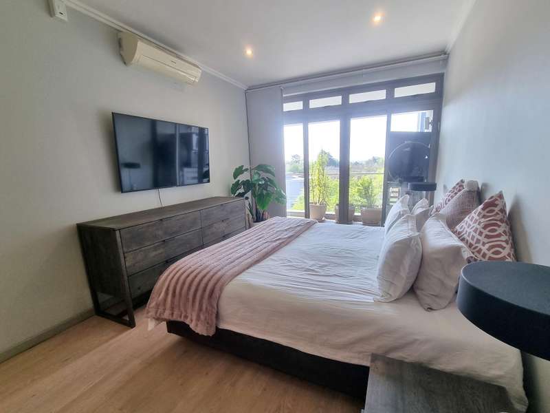 This spacious 2-bedroom, 2-bathroom unit on the second floor, featuring a large north-facing covered balcony with views over the treed neighbourhood, offers a modern and comfortable lifestyle. The beautifully tiled interiors are complemented by stylish blinds on all windows. The apartment features a sleek granite-top kitchen equipped with a dishwasher, washing machine-dryer, fridge-freezer, and microwave. Stay connected with included uncapped fibre Wi-Fi at 100/100 Mbps. Two covered parking bays and a lift provide easy access. 24-hour security guards, controlled access, electric fencing, and a security gate at the apartment's front door give you peace of mind. Close to Sandton Central, Hyde Park, and Craighall Park. Easy access to main roads and highways.