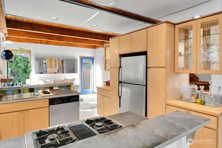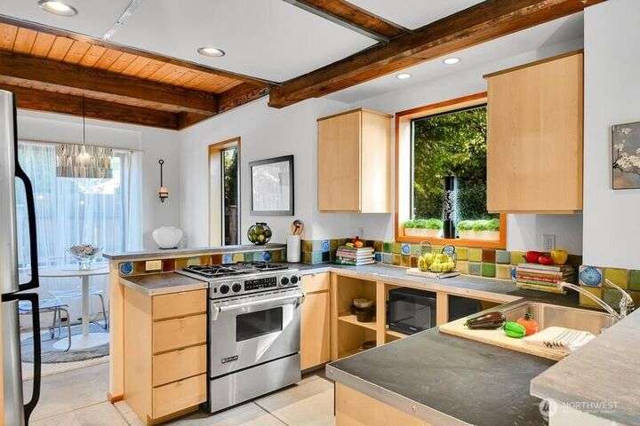 JUST LISTED! Only 1/2 block from Greenlake, this outstanding, free-standing, 2+BD home boasts the convenience of a LUXE townhome--but W/O the annoyance of a HOA or any shared walls! Cool industrial vibes (radiant concrete flrs, raw iron, & exposed ducting) meld brilliantly w/warm finishes (rough-hewn beams & cozy fireplace) to create the epitome of chic living. The main flr Great Rm is an entertainer's dream w/proper dining space, designer Chef's kitchen, & luxurious living space. Soaring, vaulted ceilings in the oversized Primary BD...don't miss the party/gaming loft & roof deck! Perfectly upscaled fixtures from Ballard High add whimsy and maxx style. Storage+! Private garden sanctuary! 4-Star Green! 2 parking spaces! Live Cool--Live Here!