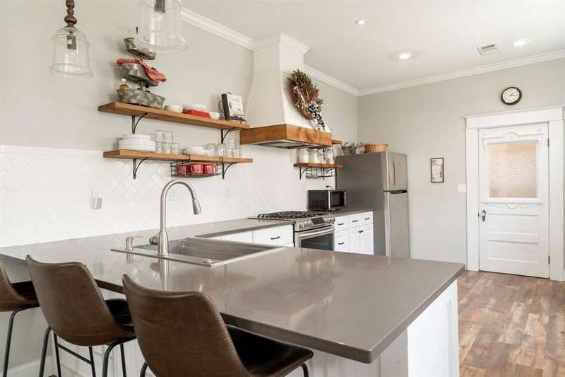 Built in 1920, this charming Waco home blends, character, history and great location. Featured on Tim Allen's game show Assembly Required when local builder Jon Dawson (Dawson Custom Homes) competed, this home carries a fun piece of pop culture alongside its vintage appeal. This beautifully updated 3 bedroom, 2 bathroom Craftsman-style home blends timeless charm with modern function. Step inside to a bright and airy open concept layout where living, dining and kitchen flow seamlessly for entertaining and every day living. Classic shiplap walls, warm finishes and thoughtful details highlight the homes character, while the spacious kitchen anchors the space with quartz countertops, stainless steel appliances and an abundance of window for natural light. Step out front to a large covered front porch complete with porch swing adding to the charm. A private, side courtyard with pea gravel, offers outdoor space ideal for gardening, grilling and hanging out. Additional exterior features include, gravel driveway, solar lighting and an adorable 10 by 12 custom built shed for extra storage. Located just minutes from Baylor University , McLennan County Community College and downtown, this home offers historic charm with the convenience of modern living.
