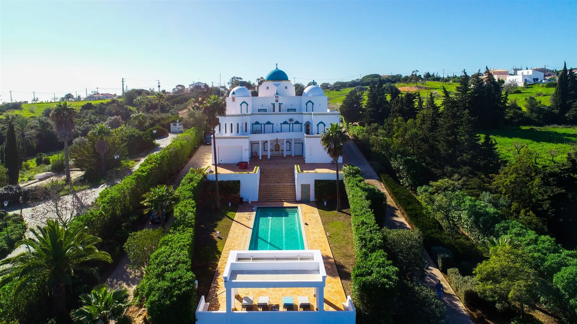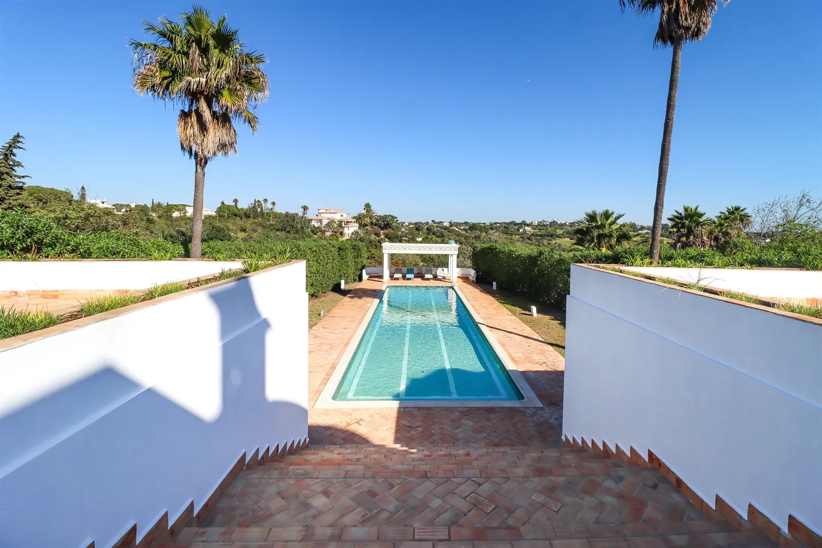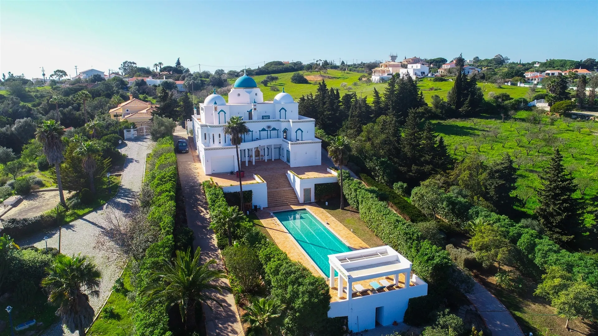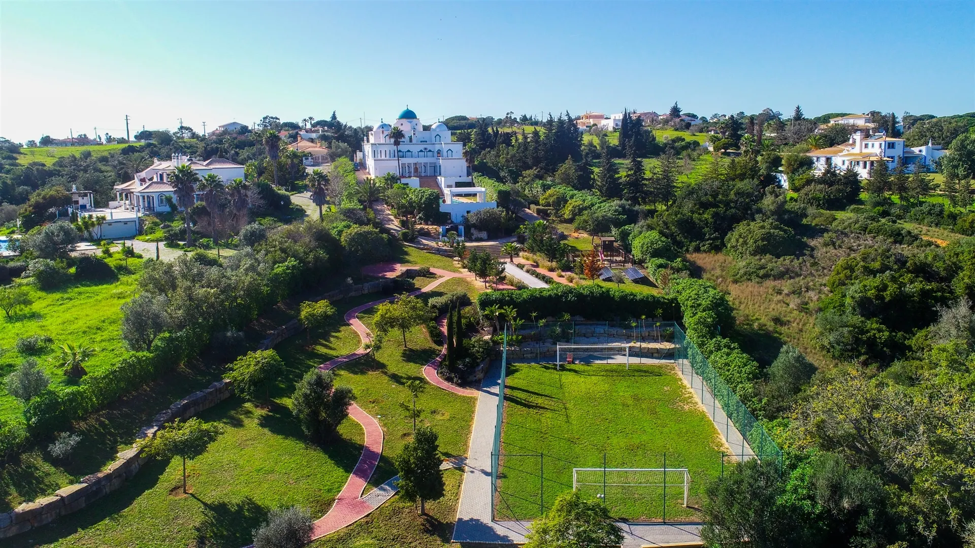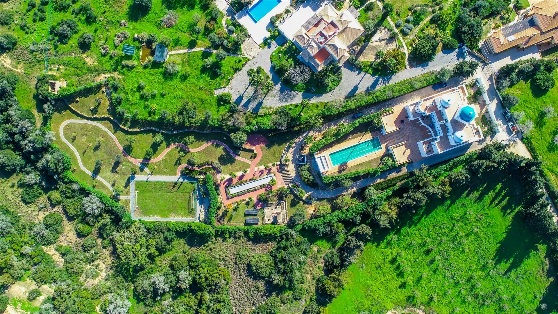 Within the extensive plot of the villa, we have a stunning swimming pool designed especially for swimming in length, and a football field that is currently in need of a renovation.