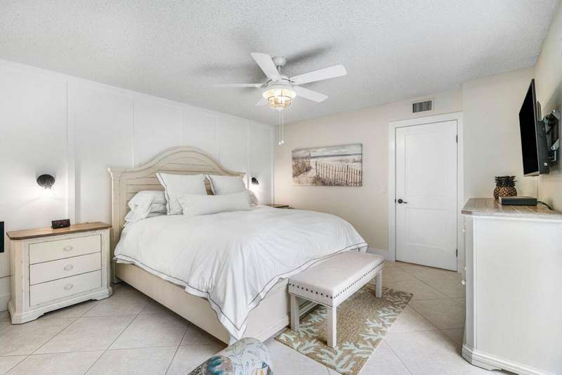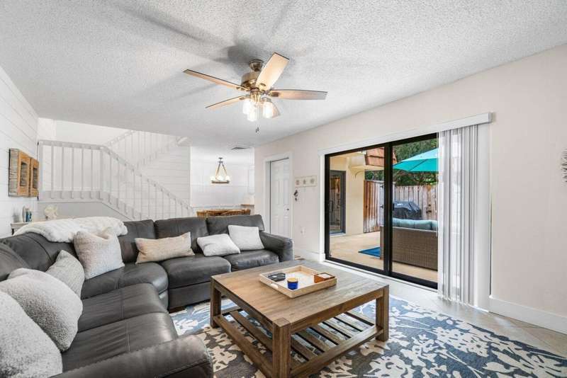 This beautifully renovated home, ideally located between the Intracoastal and Jupiter Beach/Juno Pier, offers luxurious coastal living just steps from resort-style amenities like a pool, tennis, pickle ball, and basketball courts. Inside, youll find fresh paint, new baseboards, shiplap and box wall accents, and a modern kitchen with granite countertops, white shaker cabinets, custom lighting, and newer stainless steel appliances. All three bathrooms have been fully remodeled, with added upgrades including new closet doors, ceiling fans, and light fixtures. Hurricane impact sliders and a new front door ensure peace of mind, while the private courtyard--with professional grade landscape lamps that double as tiki torches--offers an inviting space to relax or entertain. This is a ONE OF A KIND