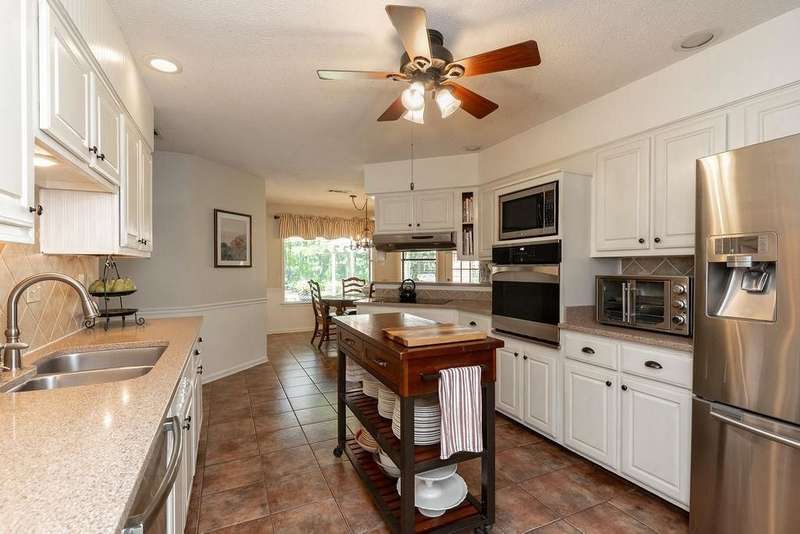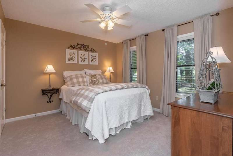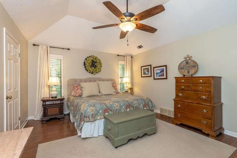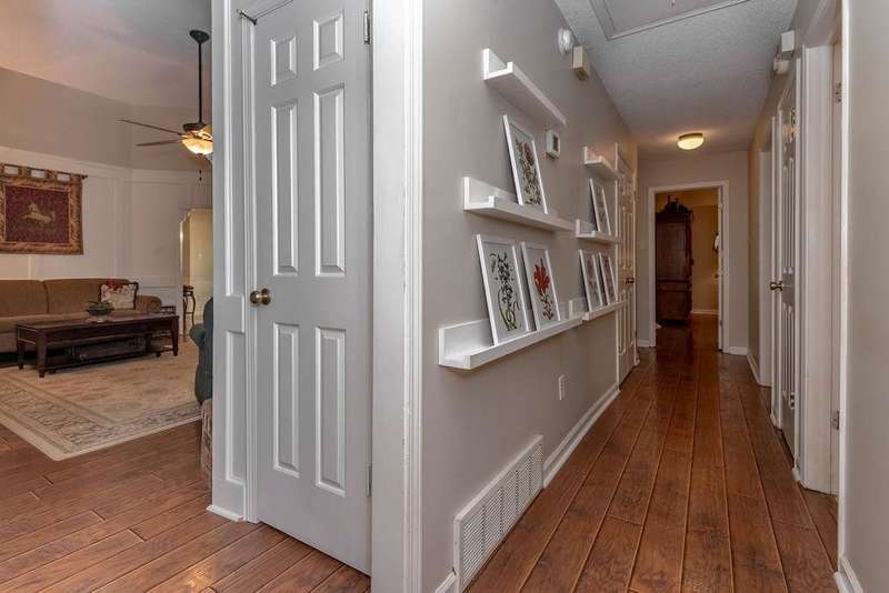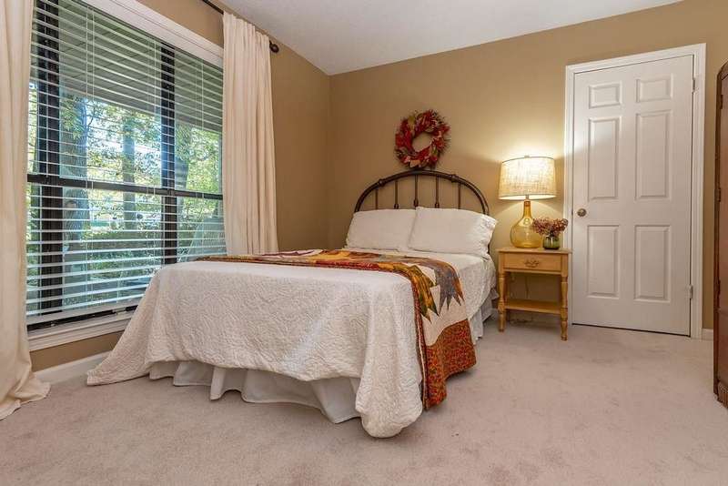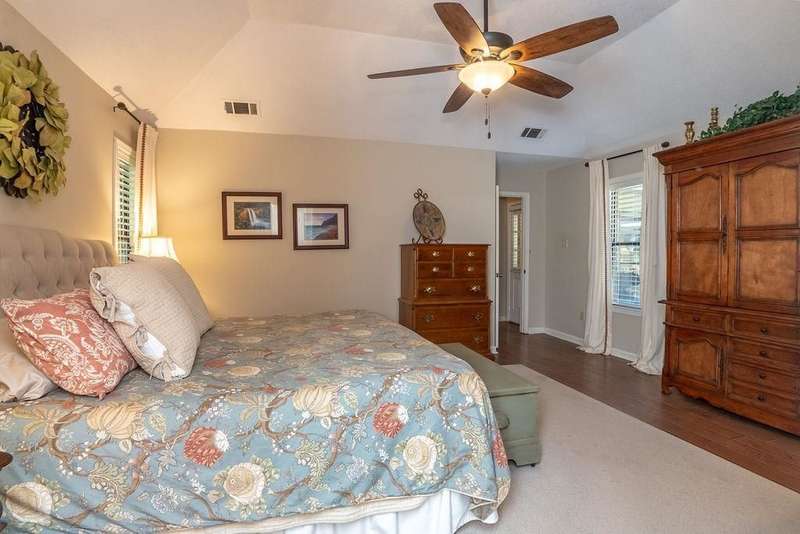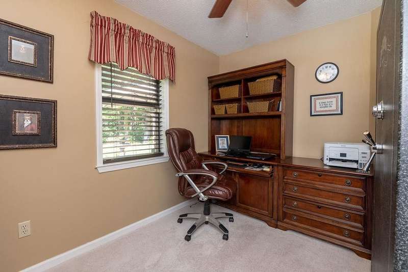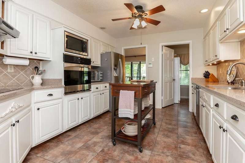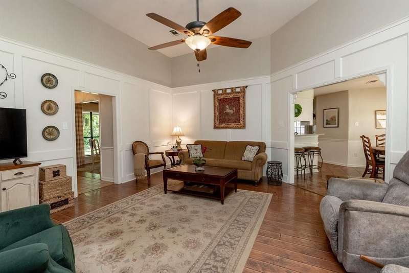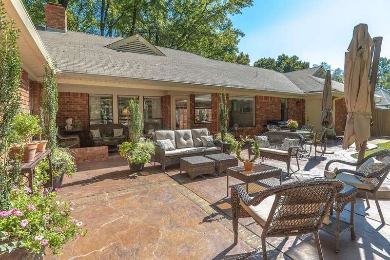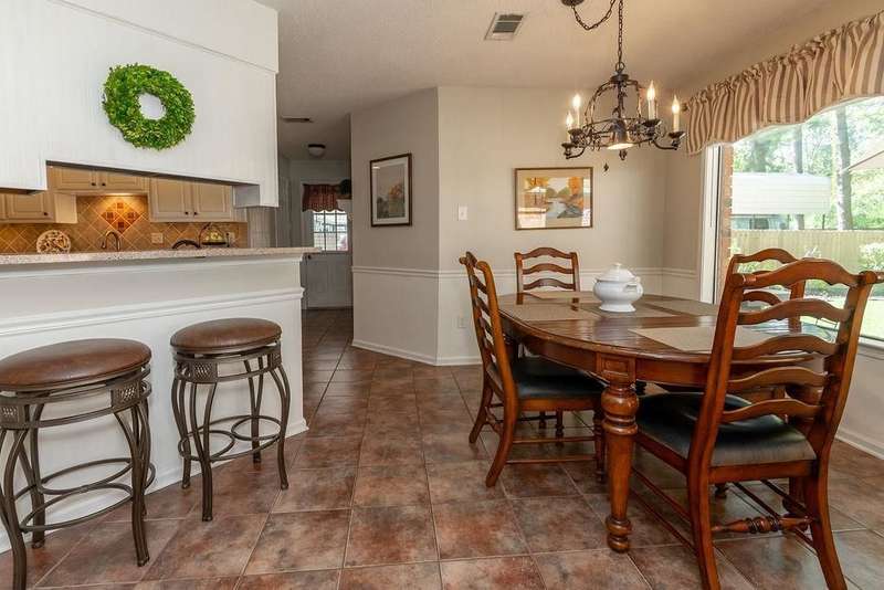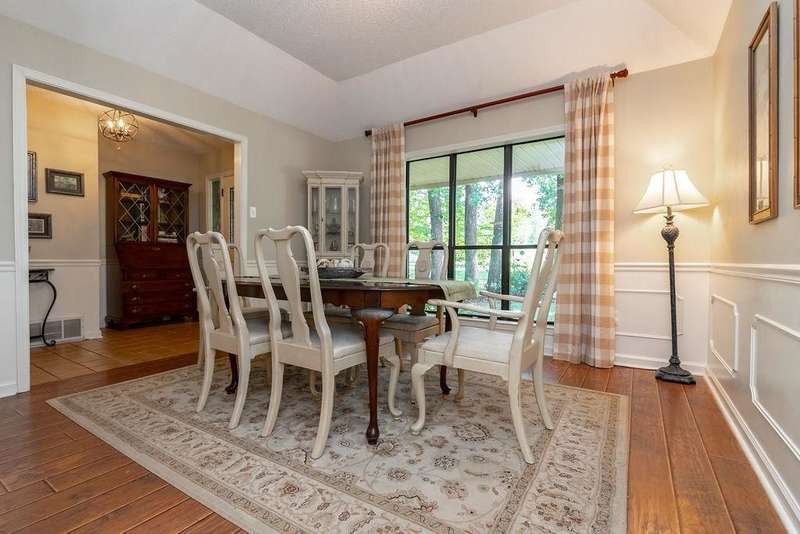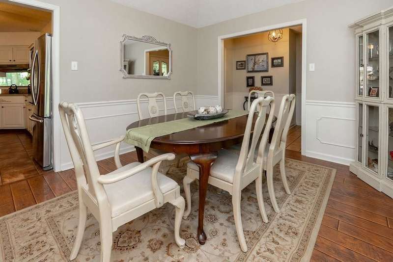 Serene bird-watching paradise on a beautiful 2.08-acre lot! This one-level, 4-bedroom brick home offers the perfect blend of comfort, function, and natural beauty. Outdoor living abounds with a 16' gazebo, a large stone firepit, a front yard swing, a covered front porch, and both covered and uncovered stamped concrete patios. Enjoy the soothing sound of the water fountain and the convenience of leafguard gutters, along with a covered concrete RV parking pad featuring 20-, 30-, and 50-amp power connections, and a spacious 3-car garage. Inside, you'll find a dedicated home office, separate dining and breakfast areas, an induction cooktop and convection self-cleaning oven, abundant cabinetry, a pantry, and an oversized laundry room. Elegant quartz kitchen countertops, granite bath vanities, a striking gas log fireplace, high ceilings, walk-in closets, attractive wood laminate flooring, new carpet, and thoughtful updates throughout make this home a peaceful and inviting retreat.