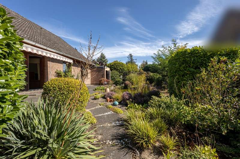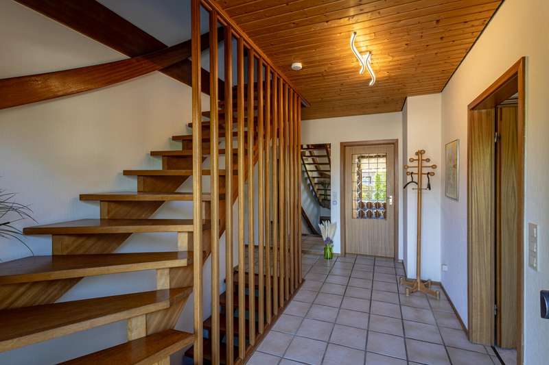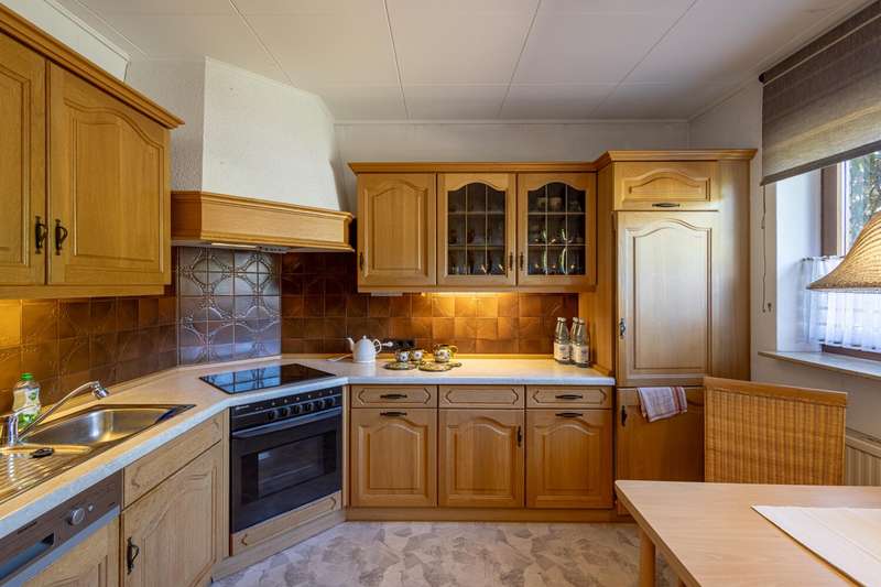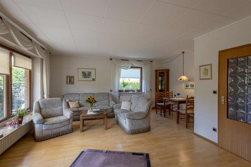 With a living space of approx. 160 m² and a plot of approx. 543 m², this spacious detached house from 1975 offers enough room for a wide range of living requirements. This is a particularly interesting opportunity for families or couples who value a comfortable and flexible room concept. The house has a total of six rooms, including four perfectly sized bedrooms. The clear room layout impresses with its functionality and numerous possible uses. The living spaces on the first floor have a pleasant layout. The focal point of the living area is the spacious living room, which creates a harmonious transition to the sunny terrace with electric awning. Here you benefit from direct access to the spacious garden, which offers plenty of room for playing, gardening or relaxing together. The well-maintained and practical fitted kitchen fulfills all modern cooking requirements. Various storage options and a well thought-out arrangement of the work surfaces underline the suitability for everyday use. A separate guest WC completes the first floor. There are further bedrooms on the upper floor, which can be used individually as children's, parents' or study rooms. Two bathrooms offer comfort and privacy, even for larger households. A further shower is available in the partial basement and is ideal for guests, for example. The two bathrooms and an additional guest WC provide flexibility at all times of the day. The partial basement creates storage space for provisions, hobby equipment or household appliances and thus supports a tidy living environment. The location of the house offers an advantageous connection to all important facilities for daily needs. Shopping facilities, educational establishments and leisure activities are all within easy reach. Conclusion: This detached house presents itself as a well-kept and versatile home that impresses with its spacious areas, well thought-out room layout and attractive fixtures and fittings. It offers a wide range of prospects for discerning buyers looking for a new center of life. Arrange a viewing today to see the benefits of this property for yourself.