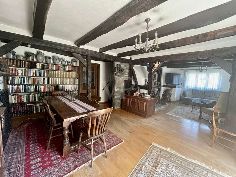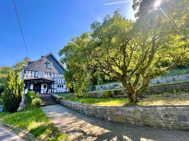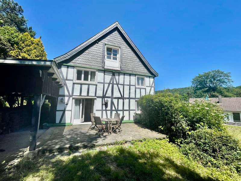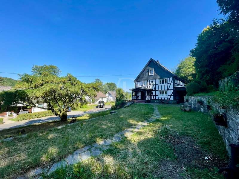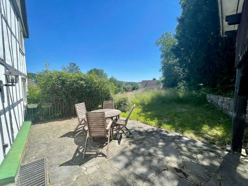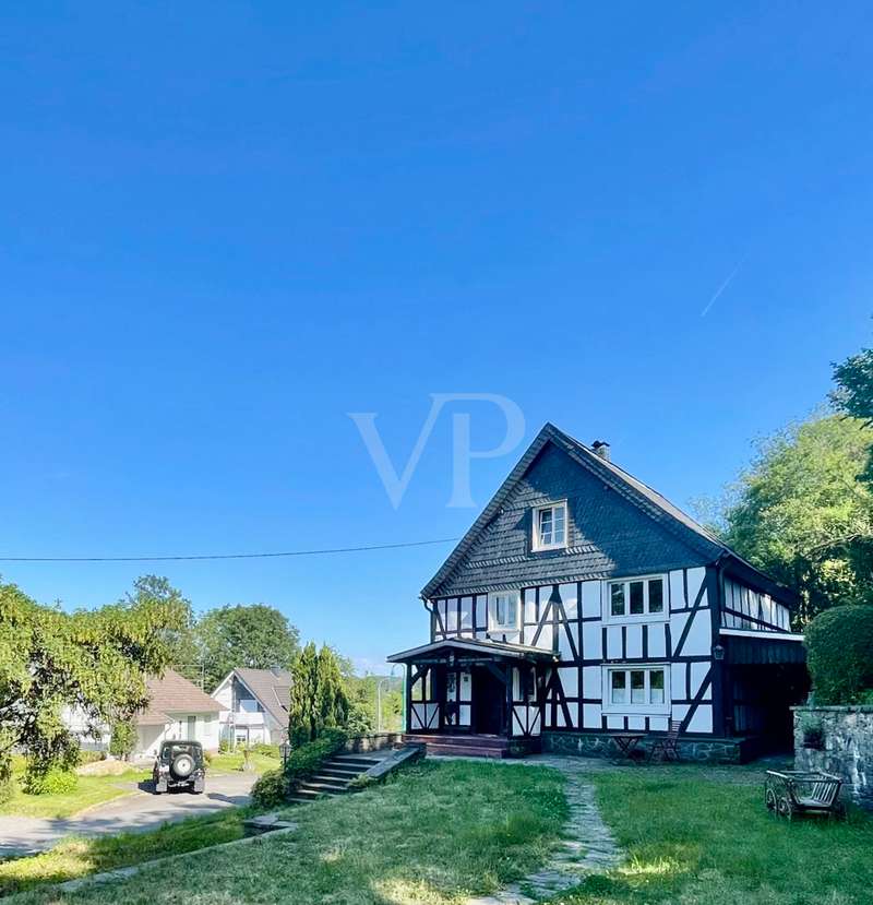 This dreamlike, listed rural property is located on the outskirts of Wiehl/Reichshof. The living space is spread over approx. 174 m² on three levels. Surrounded by an idyllic garden with a historic fireplace and mature trees. A separate brick half-timbered house of approx. 59 m², built in 1984, can also be used for a variety of purposes. Underneath are the property's two garages. The entire historic building is very well maintained in parts, but also has two or three renovation tasks for the new owner. Continuous care and attention is essential for such a historic building.