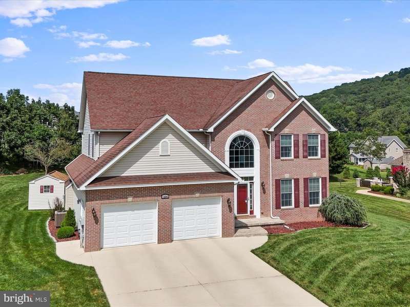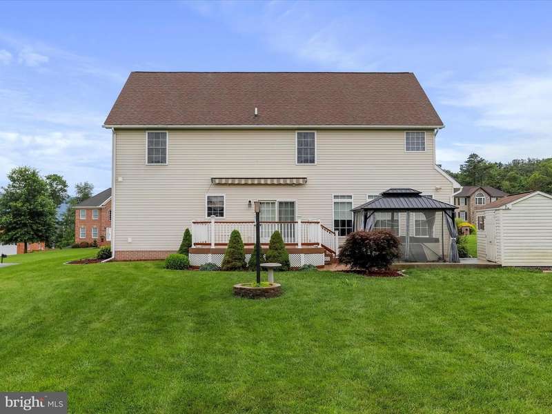 Welcome to Ashleigh Heights (LaVale) - With 3,767 sq ft of finished living space, the Open Floor plan offers modern comfort across three finished levels - With a two story inviting entry and 9 ft ceilings, this home combines luxury and comfort - There are 4 bedrooms and 3 1/2 baths - The beautiful kitchen has Corian surfaces with stainless steel appliances - Breakfast area - Off the kitchen is a sunken family room with a gas fireplace - Also off the kitchen is the rear deck and patio perfect for entertaining - The deck has a retractable awning cover and a hot tub with a gazebo - The owners have decided to include the bird house for your constant entertainment - The mountain views are in every direction - The primary bedroom has a jacuzzi tub, toilet/bidet, and towel drying rack - The laundry room is also on the main floor - The fully finished basement provides even more versatile living space complete with a large rec room and plenty of storage space - Central Air - Storage Shed - Plus Large 2 car garage - The best of convenience and community!
