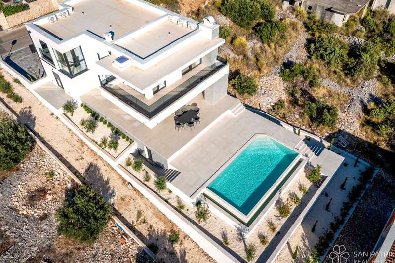 Located on an elevated plot above Primosten, in a peaceful neighborhood of beautiful villas, this modern, architecturally clean-lined villa is oriented toward the sea and sun. Positioned on a 600 m2 plot, this three-level villa offers the perfect blend of luxury, functionality, and Mediterranean lifestyle. Everyday living here becomes a permanent vacation.