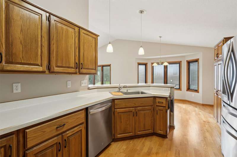 Pristine Gracious Homes Ranch Custom Walk-Out with Exceptional Space and Style Discover refined comfort in this customized Gracious Homes resale a beautifully maintained 3-bedroom, 3-bath walk-out ranch offering thoughtful design, generous living areas, and freshly painted and carpets are cleaned! Step inside to an inviting open layout with vaulted ceilings that enhance the sense of space and light, creating a bright and cheery atmosphere. The main level features a flowing design perfect for entertaining or relaxing, with a spacious primary suite, offering its own extra-large walk-in closet for effortless organization. Enjoy the convenience of a main-floor laundry room and take in serene views from the east-facing deck and patio, ideal for coffee at sunrise or peaceful evenings outdoors. The walk-out lower level extends your living area with a wet bar, cozy fireplace, 2 large bedrooms with huge walk-in closets and a dedicated workshop room complete with venting ideal for hobbyists or DIY projects. Additional highlights include garage attic storage for extra space and access to a community pond, offering tranquil surroundings and natural beauty right outside your door.This pristine ranch combines open, airy living with thoughtful customization in every detail bright, spacious, and move-in ready for its next proud owner.