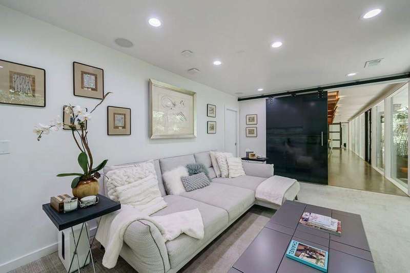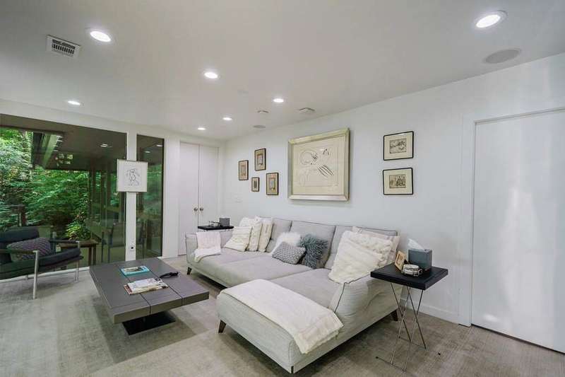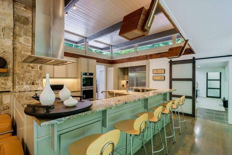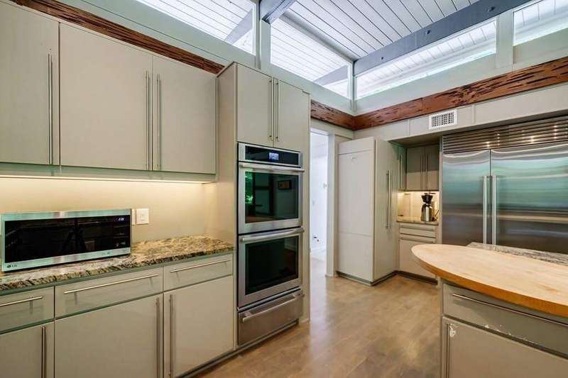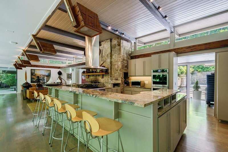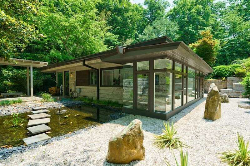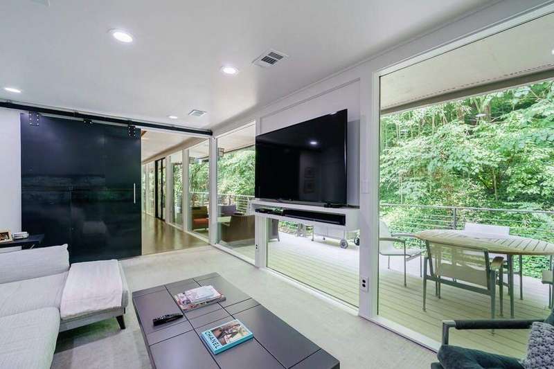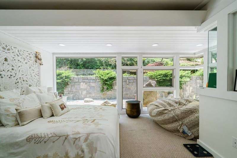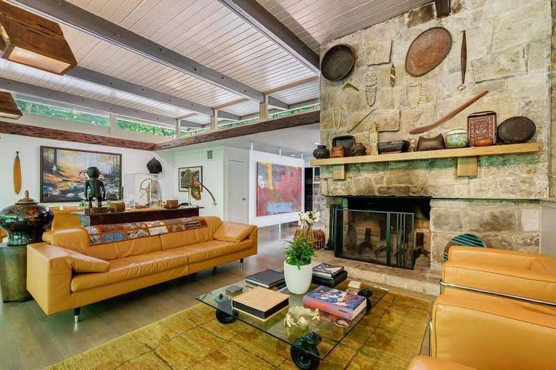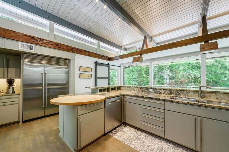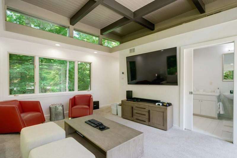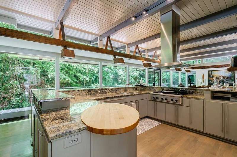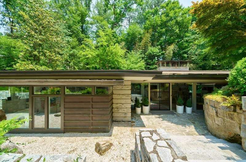 Tucked away on a tranquil and private 2.21 acre lot, this exceptional mid-century modern home offers a rare blend of timeless architecture and serene natural beauty-just minutes from the coveted Chastain Park. Designed to impress, the home features rich pecky cypress accents, dramatic floor-to-ceiling windows, and bold rustic stonework, creating a seamless connection between indoor and outdoor living. The updated kitchen is both stylish and functional, equipped with stainless steel appliances, granite countertops, and a breakfast bar perfect for casual dining. A cozy yet expansive great room centers around a striking stone fireplace and opens to a large deck-ideal for entertaining or unwinding. The dining area, with views of a peaceful creek, sets the tone for relaxed, elegant gatherings. The main residence includes four spacious bedrooms. The private primary suite is a true retreat, offering a spa-like bath with dual vanities, steam shower, and whirlpool tub. Tucked at the back of the home, it also features its own patio and sitting area. A secondary bedrooms are positioned on the opposite side of the primary suite for added privacy, while a separate den and office provide flexible living space. A detached guest house above the four-car garage offers a fifth bedroom and full bath-ideal for visitors, an art studio, or a quiet home office. A rare opportunity to own a distinctive and thoughtfully designed home in one of Atlanta's most desirable neighborhoods, offering unmatched privacy, architectural character, and convenience.