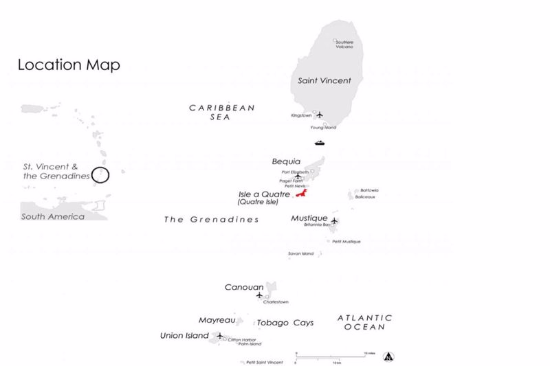 Situated at the coordinates of 12.57° N, 61.15° W, this breathtaking island forms part of the sovereign nation of St. Vincent and the Grenadines, nestled just 160 km west of Barbados in the Southern Caribbean. Spanning a lavish 376 acres, Isle a Quatre boasts an impressive length of approximately 1.86 miles and width ranging from 250m to 975m, providing ample coastal frontage across its 6.12 miles of pristine coastline.