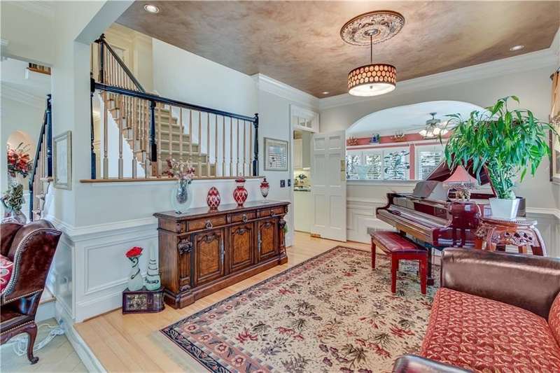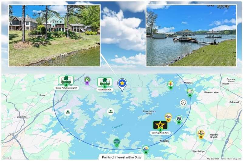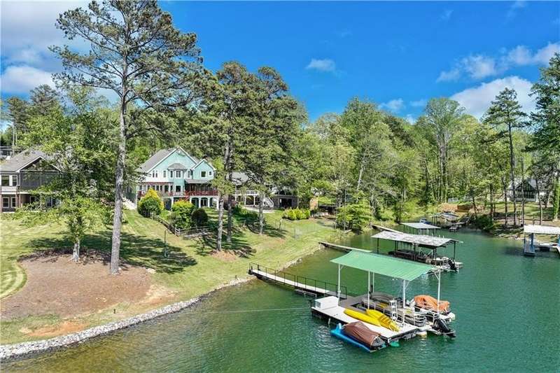 So much more than just an average view of Lake Lanier, this waterfront home offers everything you could possibly want: a quiet cove on Lake Lanier; close to the water’s edge via a walkable gentle slope; spectacular views year round from both inside and outside the home; deep water almost to the shore--the dock rarely needs to be moved; and a well-maintained single slip, covered dock with power. The entire property is beautifully landscaped, with attractive garden areas, mature trees, as well as wide open views of the lake. All the services and conveniences for daily living are close by…schools, shopping, restaurants, GA400…and the mountains of North Georgia only an hour’s drive away! As for the home itself, what a wonderful layout for both quiet, private spaces or large gatherings. The well-designed kitchen is surrounded by a large family room, breakfast area, sunroom, dining room, and music room! There is exquisite trim and finish-work throughout, including the enormous primary bedroom with ensuite bath, and two additional bedrooms with full baths, all upstairs away from the hubbub below. The finished terrace level is already set up to be whatever you might want it to be, as an in-law suite, a teen’s private space, a recreation room, or Airbnb…the possibilities are endless with its large family/game room, 2 bedrooms, full bath, kitchenette, workroom, and exterior entry. A 3D tour is also available.