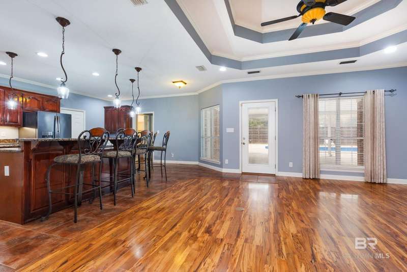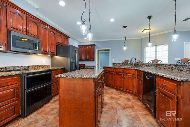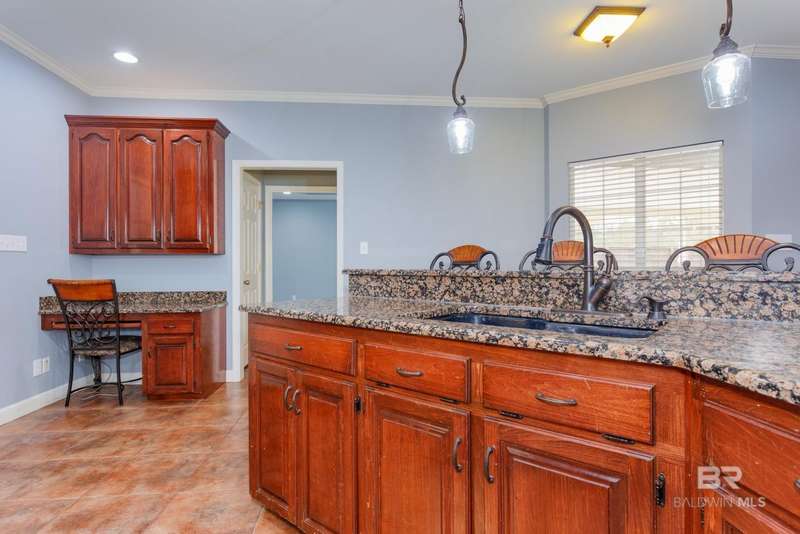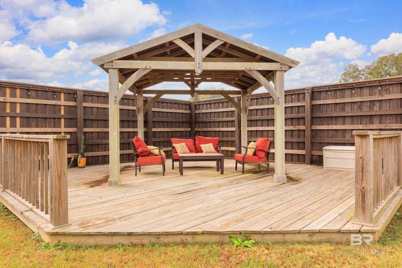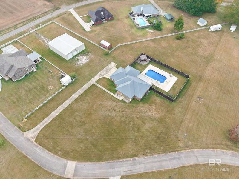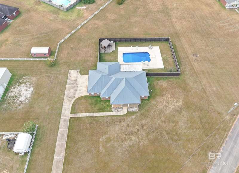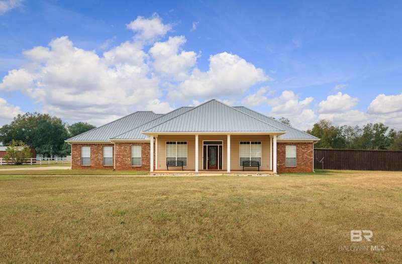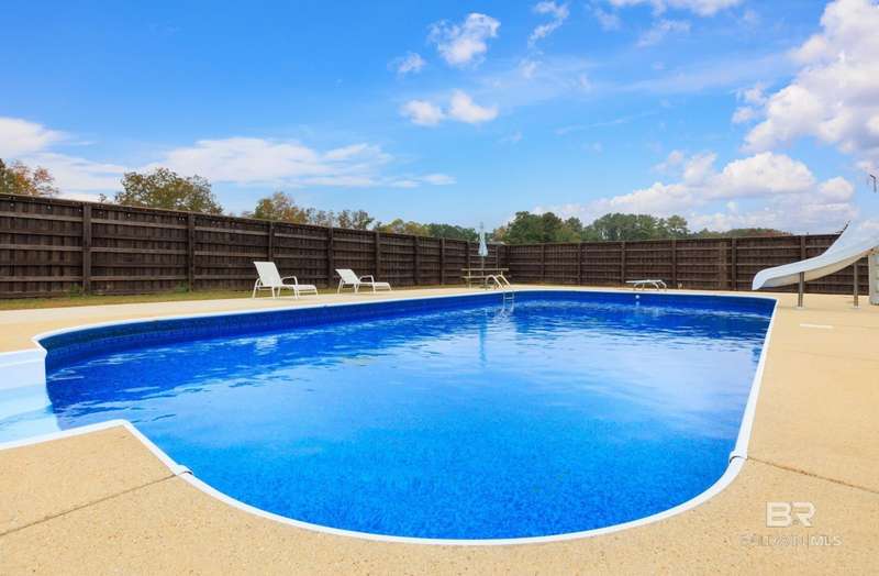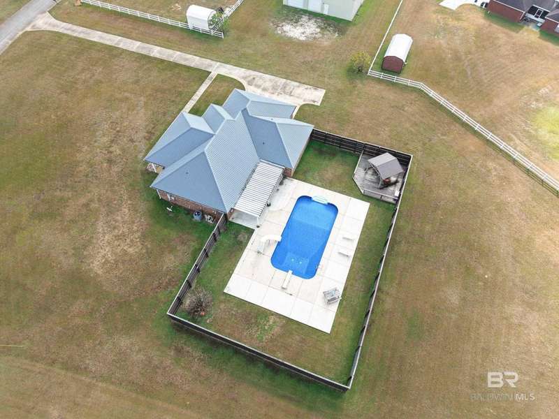 Don't miss this incredible home in a highly desirable community. Located on over 2 acres, this property has space for your life - space for playground, pickle ball courts, your own walking trail, disc golf, soccer field, whatever you desire and a swimming pool is already included. Thoughtfully designed, the home offers an open-concept layout filled with natural light?perfect for both entertaining and everyday living. There are three bedrooms and a bath on one side and spacious primary suite on the other side of the home which includes a large bathroom and plenty of room to unwind in jetted/soaking tub or separate walk-in shower. The open kitchen offers black stainless appliances, granite countertops, an island, generous cabinet storage, and a pantry ideal for anyone who enjoys cooking. Step outside to a private, fenced area and a cozy covered porch, separate covered gazebo and beautiful sparkling pool?great for gatherings or quiet relaxation. There is a storage building located at the back side of the property as well as a super size 60x40 metal building for your toys, a workshop, etc., let your imagination run wild. Building has roll-up garage door on both ends and is not a part of the homeowner association. The building has a pool table and bar area with kitchenette set up for gameday fun, teen paradise, man cave, - you decide. Located just minutes from Mobile area shops, dining, and entertainment, this home is super close to Mississippi, also. This home offers the perfect blend of spacious home and outdoor living as well as the large building set up for entertaining and ready to be your special use space. Schedule a showing with your favorite agent before it's gone! Buyer to verify all information during due diligence.