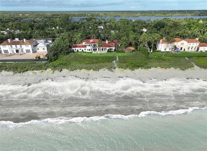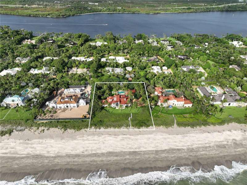 A rare opportunity to own a legacy estate on prestigious Jupiter Island, where timeless Mediterranean architecture meets impeccable craftsmanship. Set on an expansive oceanfront lot, this residence has been thoughtfully designed to balance privacy, comfort, and sophistication, offering both intimate family living and grand-scale entertaining. The main house features a luxurious primary suite complete with dual full bathrooms and a private office, creating a retreat that blends comfort and elegance. Downstairs offers an en-suite guest bedroom and an additional office, along with two half bathrooms for convenience. The lower level includes a rare basement, a versatile and highly desirable feature in South Florida.