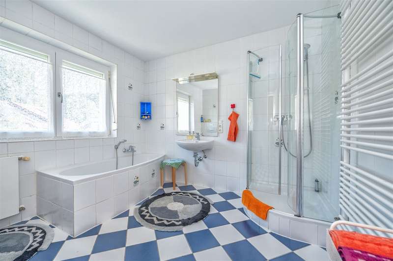This spacious two-family house with two garages has a living space of over 200 m² and a plot size of 865 m², offering excellent conditions for families, living and working, multi-generational living or a combination of living and renting. The property, which was last modernized in 1997, impresses with its well thought-out room layout and versatile usage options. The two residential units are each separately accessible and are bright and friendly. With a total of ten rooms - including four to six bedrooms - and two bathrooms, the house offers numerous design options. The room layout is suitable for a larger family as well as for use as a family home or for creating a workspace in your own home. The first floor welcomes you with a spacious hallway that provides access to the central living areas. In addition to the large living room, there are further rooms here that can be used flexibly as bedrooms, studies or guest rooms. The kitchen has generous floor space and enough room for a dining area. A daylight bathroom functionally rounds off the first floor. On the upper floor, which has almost the same layout, you will find further rooms that can be used as bedrooms or as individual retreats. There is also a modern bathroom on this floor. Large windows provide pleasant light in all rooms and open up views of the extensive property. The bright living areas offer a friendly atmosphere and high-quality conditions for everyday living. In addition, the south-facing balcony provides the perfect opportunity to enjoy the sun. The well-kept outdoor area invites you to linger and enjoy shared activities. The size of the plot opens up a wide range of possibilities for garden lovers, including the installation of play equipment, a spacious terrace or the creation of raised beds. The semi-detached house also has plenty of storage and utility space as well as parking spaces to make everyday life convenient, not least thanks to its practical basement with direct access to the garden. The house was last modernized in 2001 and has a well-functioning low-temperature heating system from 1997 and solar thermal energy for domestic hot water. The well-kept substance and the well thought-out room concept offer you the opportunity to realize your own living ideas and wishes with manageable effort. This two-family house combines individual usage options with an advantageous location and is particularly suitable for buyers who value space, flexibility and a pleasant living environment. We would be happy to show you this versatile house in person during a viewing - let us convince you of its potential on site.