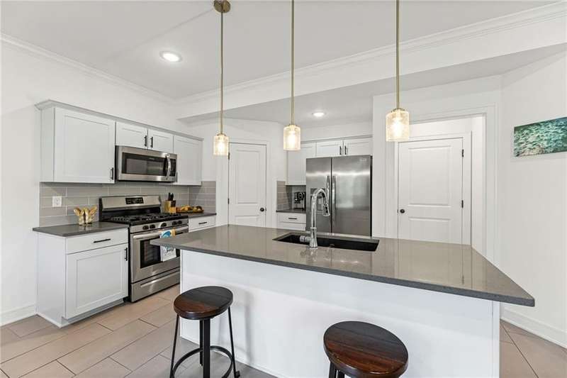 Townhome living in the heart of Parkville! This stylish 3-bedroom, 2.5-bath home with a 2-car garage is filled with thoughtful upgrades and modern finishes. The open main floor showcases quartz countertops, stainless steel appliances, tile flooring, soft-close drawers and doors, and energy-efficient LED lighting. Upstairs, the primary suite offers a spa-like retreat with an en-suite bath, walk-in closet, and convenient laundry access that connects directly to the master closet. Two additional bedrooms provide flexible space for family, guests, or a home office. Enjoy the abundance of natural light and peaceful green space views from your back windows. The HOA takes care of the community pool, lawn care, building maintenance, and snow removal—making for truly low-maintenance living.