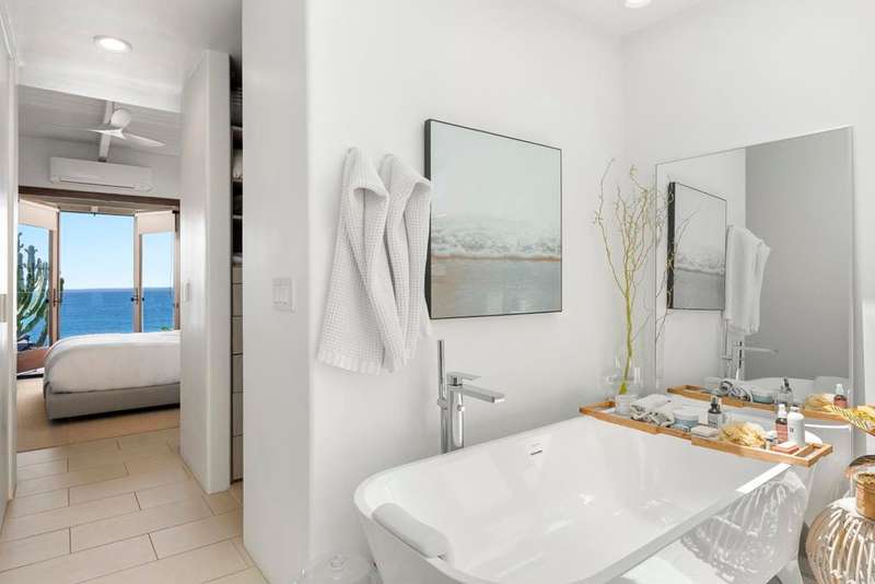 A rare chance to lease one of Neptune Avenues most captivating oceanfront estates. Elevated above the sand with panoramic views of the Pacific, this fully furnished coastal sanctuary offers direct beach access via private staircase and unforgettable sunsets from nearly every room. Designed for privacy and tranquility, the gated entry leads to a serene courtyard and custom Bali-style door. Inside, walls of glass blur the line between indoor luxury and outdoor beauty, with dual primary suites, flexible living spaces, and designer finishes throughout. Expansive oceanfront terraces, surfboard storage, and low-maintenance landscaping complete the experience, just moments from Leucadias best restaurants, shops, and cafes. Available as a short-term rental (30-day minimum). Ideal for seasonal stays, executive relocation, or a luxury coastal sabbatical.