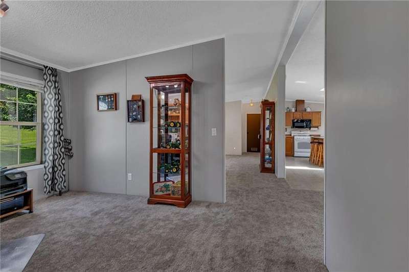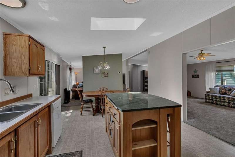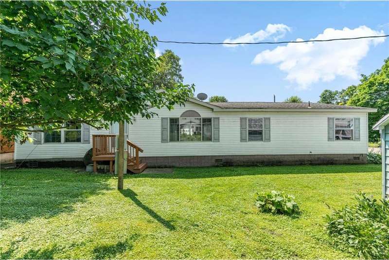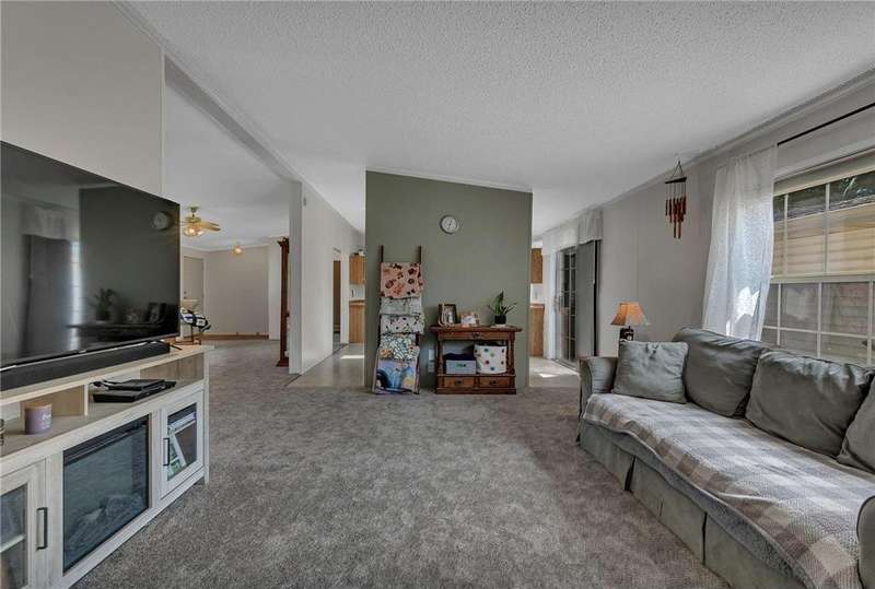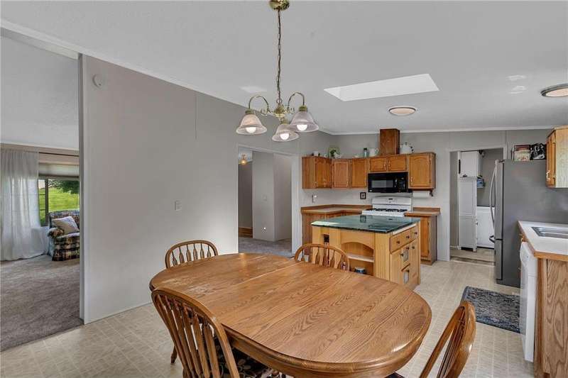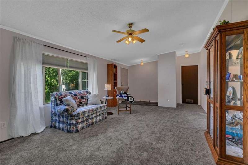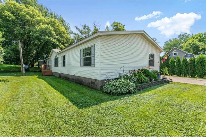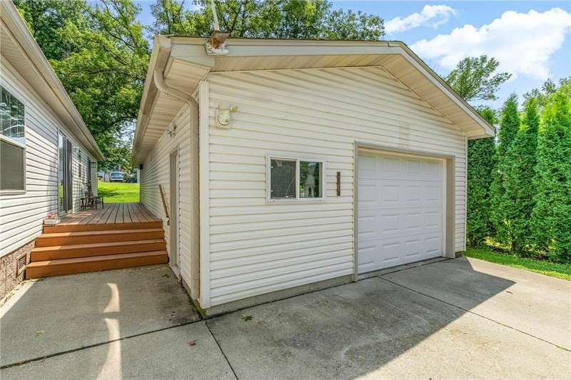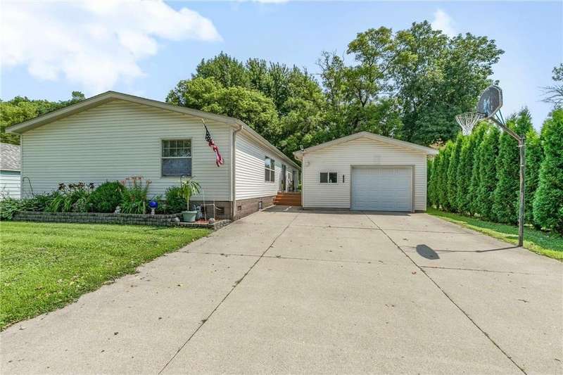 Welcome home! Everything you need is on one level here. This home features a spacious living room and great room, all with brand-new carpet and fresh paint throughout. The updated bathroom and laundry room add comfort and convenience, while two new skylights bring in natural light. The exterior is maintenance-free, and the oversized two-car drive-through garage offers openers on both ends along with handy pull-down storage space above. Out back, you’ll find an awesome shed for storage and with bonus room perfect for entertaining or hobbies. Located on a quiet street, this property is within walking distance to the school and downtown—making it as convenient as it is inviting.
